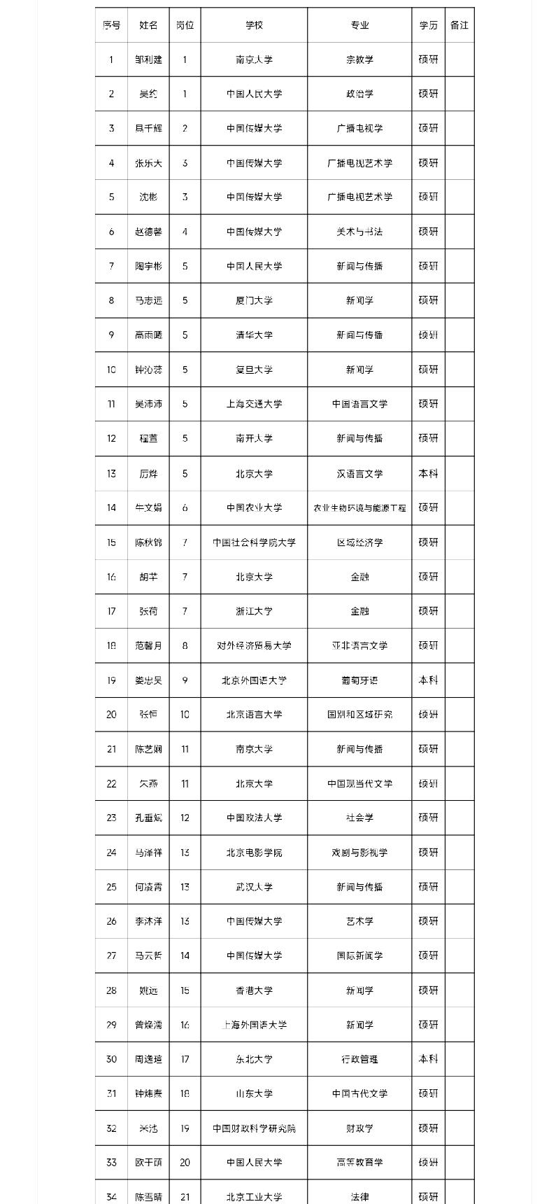人民日报社2026年度公开招聘工作人员拟聘用人选公示 根据《人民日报社2026年度公开招聘工作人员公告》,经过笔试、面试等程序选拔,现就邹利建等63名拟聘用人选进行公示。