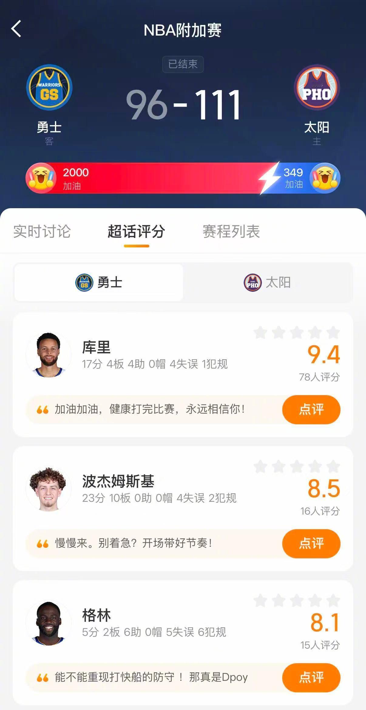 欢迎大家进入球队超话菲尼克斯太阳金州勇士 对球员表现进行评分!