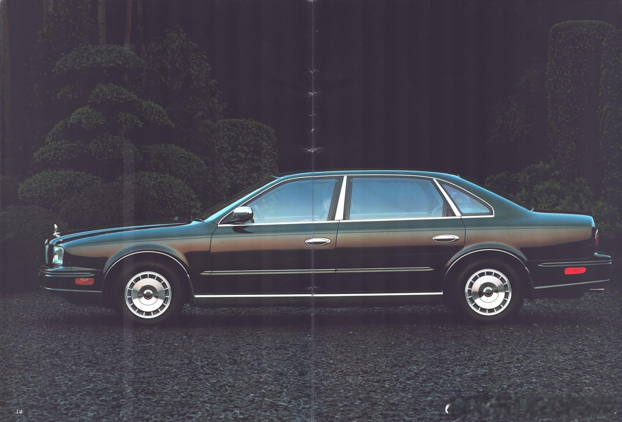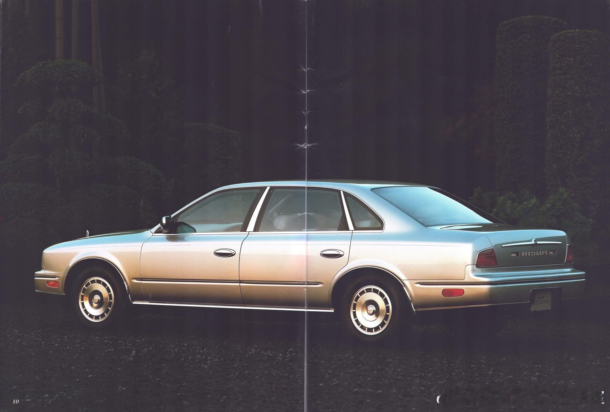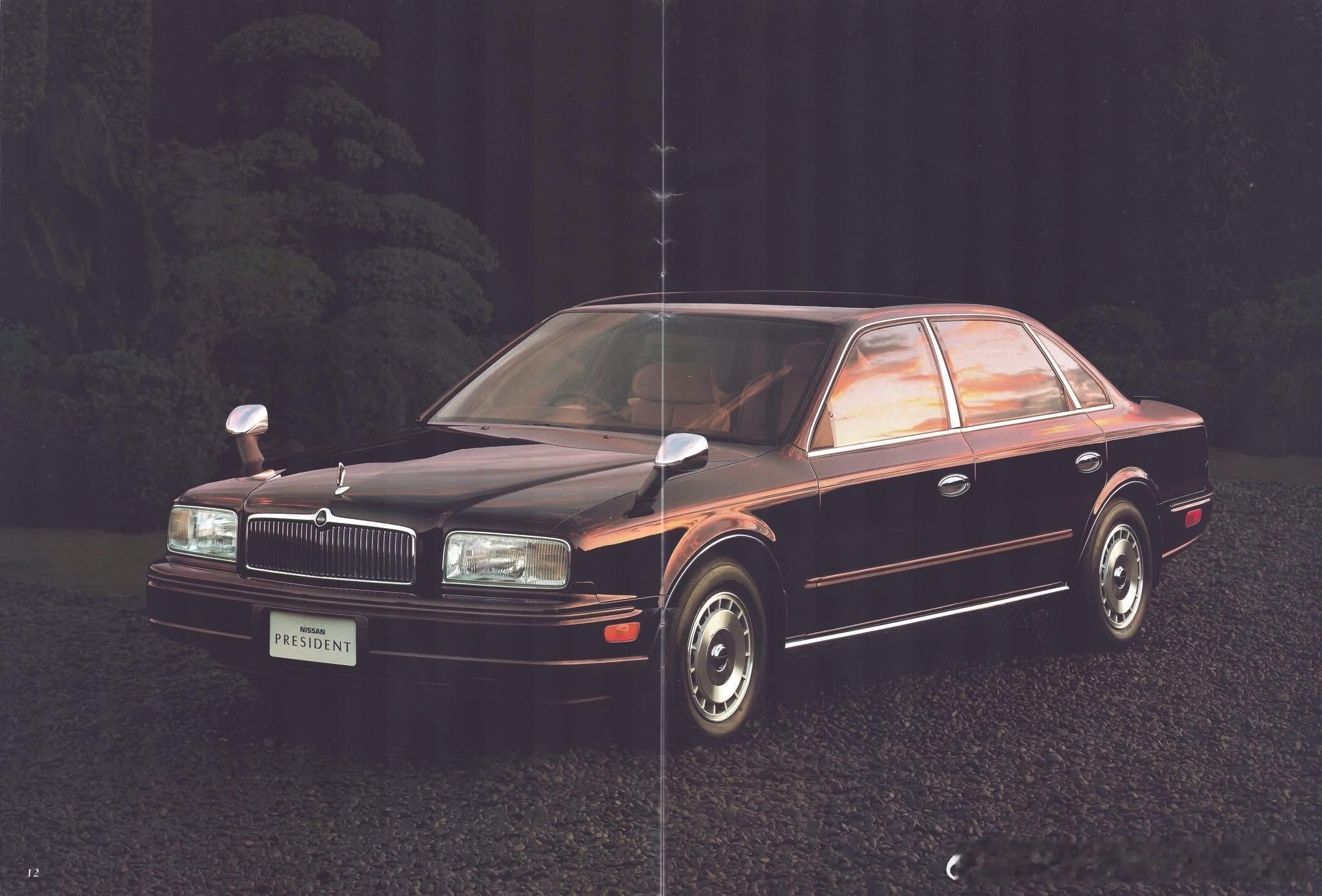 1991年日产President(总统) 是日产历史上的第三代旗舰豪华轿车(代号 JG50 / JHG50),与丰田世纪齐名,是顶级国宾/商务豪华车的代表。当年顶级D级豪华轿车(全长超5.2米),4.5L V8,90年代日产901计划巅峰之作,对标欧洲豪华品牌(奔驰S、捷豹XJ)。首次流水线量产(前两代纯手工),但仍保持极高工艺。 与英菲尼迪Q45同平台,President为本土顶配版,Q45为北美版。在90年代初当年日本第二贵量产车:售价860万日元,仅次于本田NSX。90年代起成为本土VIP Style(VIP改装) 最经典原型车。宽大车身、豪华气场、V8声浪,至今仍是JDM豪华经典。这代稀有度极高,全球总产量仅约5.6万台,从未正式出口,仅少量流入港澳与东南亚。