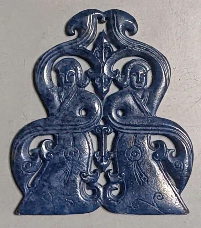小时候穿妈妈亲手做的鞋。 妈妈心灵手巧, 每每看见好的鞋样, 便去把个样自己做, 现在想起来, 以前确实是这样。 鞋样儿是纸做的, 妈妈是拿纸去取个样儿的。 妈妈说去“把个鞋样儿。” 古人治玉, 好的样儿人人喜欢, 照好的样儿做一个, 可能材质不一样, 但美学价值, 历史文化价值一样。 古人老人的动手能力, 真是没得说。 现代人的动手能力, 真是没法说。 青金石的是网上的, 和田玉的是个人收藏的。