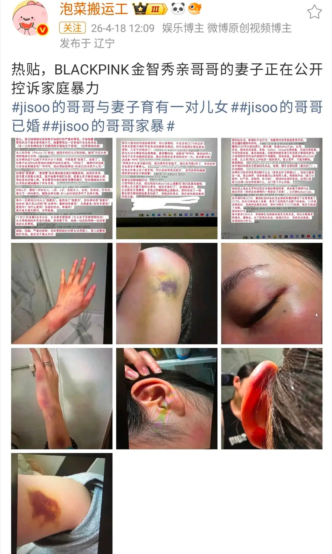 我天呐,bp金智秀的哥哥被妻子控诉家暴!!好恶心一男的🤮🤮 jisoo的哥哥