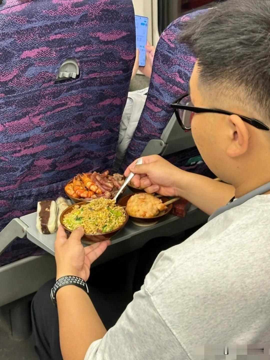 高铁上竟然可以吃小龙虾? 最近,从湘潭坐高铁去海口,到中午饭点,看到坐在我旁边的这个人竟然吃起了小龙虾和鸡腿!很好奇,他这个是怎么带上高铁的?安检不查吗?有谁能告诉我!高铁禁吃泡面