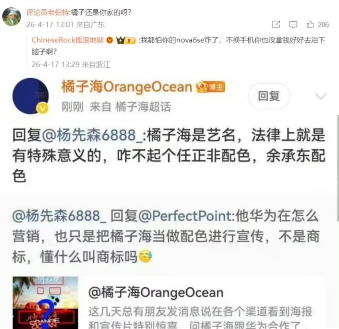 橘子海你说这要是开个玩笑顺便吐槽一下就算了,这样路人缘多好,顺便还有华为的热度。
