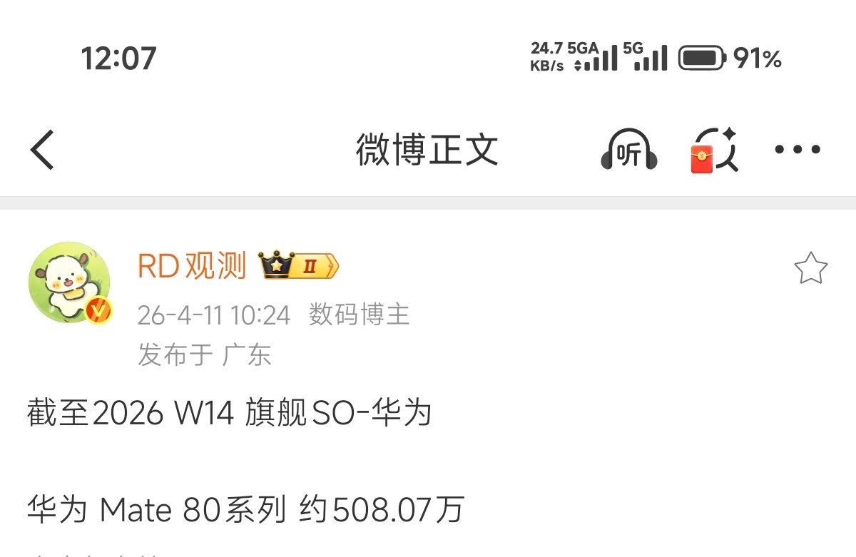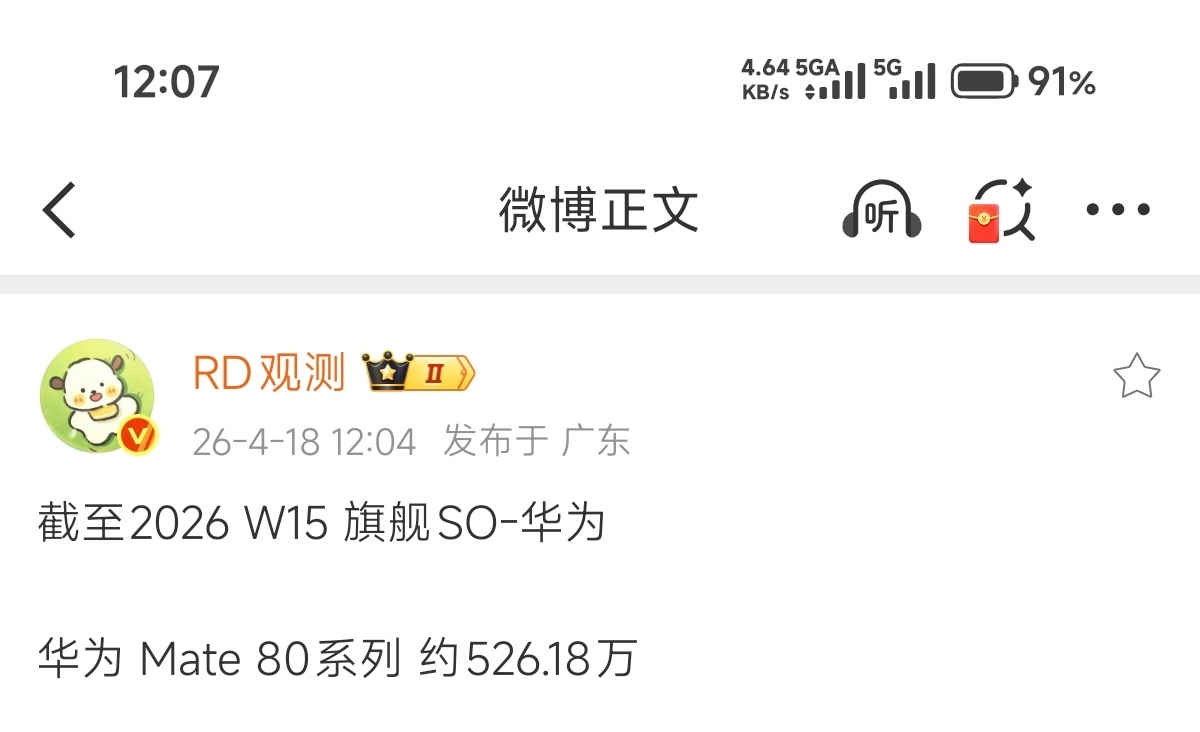 华为Mate8系列卖了526万台了,单周上涨十几万台,杀疯了。