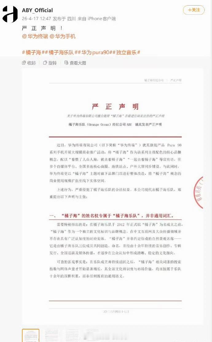 橘子海乐队称华为侵权啊????完全没料想到这个橘子海很多人在用啊,不是一种景观嘛日落洒在海面上,用来展示Pura90系列手机配色,没有什么问题吧??