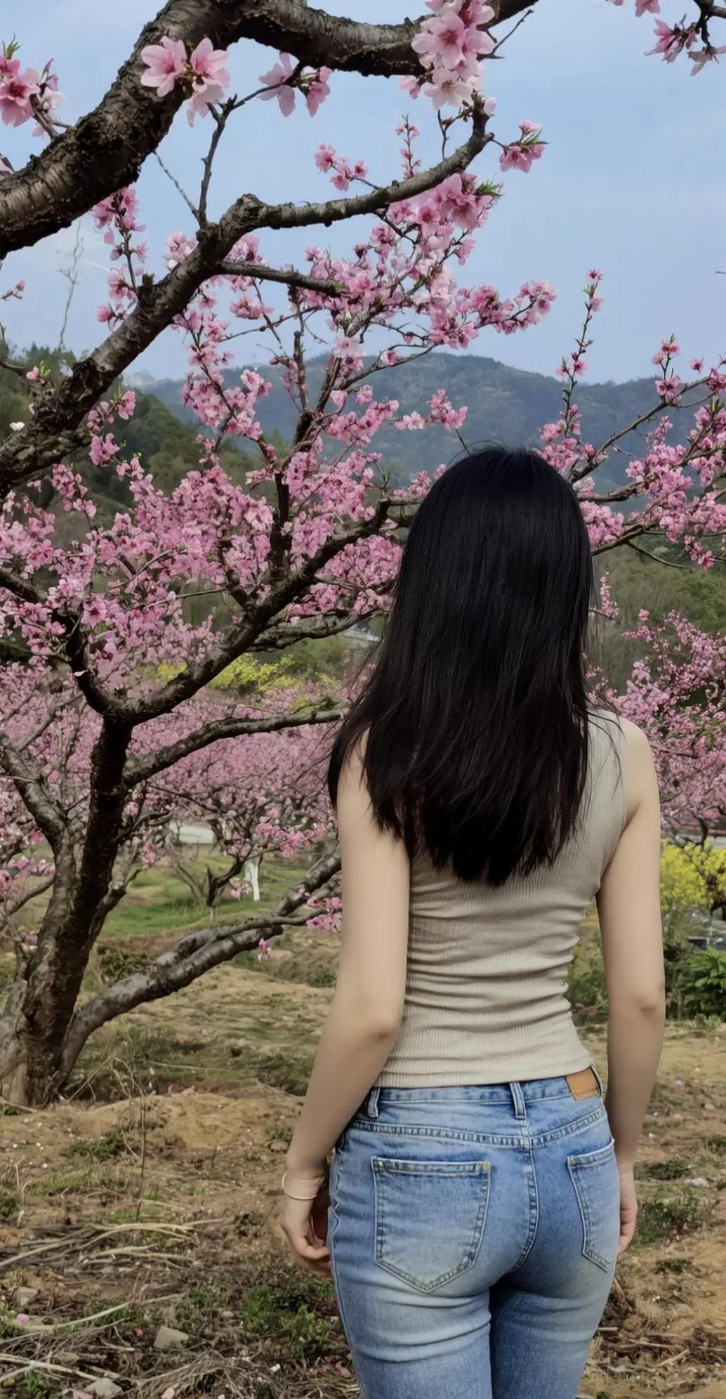 穿搭牛仔裤穿搭AI桃林风情写真 随变ai随便玩