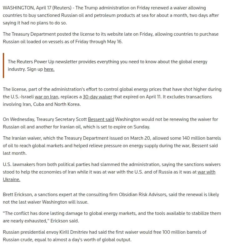 在美国财政部长贝森特“不会解除对俄罗斯的制裁”的话刚说了两天,懂王就宣布继续解除俄罗斯石油制裁,“以控制全球价格”。按照美国财政部新规定,美国允许与4月17日之前装上油轮的俄罗斯石油进行交易,有效期至5月16日。 懂王决策的随心所欲让下属经常被打脸,感到很心累。而这可能是懂王想达到的目的——别想揣摩我的心思,我让你们揣摩不定。