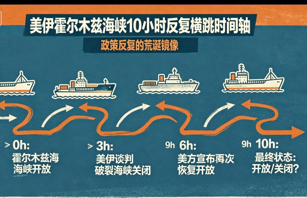 伊朗宣布关闭,美伊闹剧上演,霍尔木兹海峡反复横跳,翻脸仅需10小时上演极致荒诞大戏,短短十小时,美伊态度接连反转,堪称国际大型草台现场,09:30美国宣布降解封海峡,10:30伊朗顺势同意开放,12:30美方火速表态赞同,13:45双方联合发声确认海峡开放,就在全球局势趋于缓和之际,15:40伊朗突然痛斥美国背信弃义,直接重新封锁海峡,朝令夕改,反复无常,这场短暂的和解沦为笑话,也暴露了美国毫无信誉的本质,中东紧绷的局势再度升级。