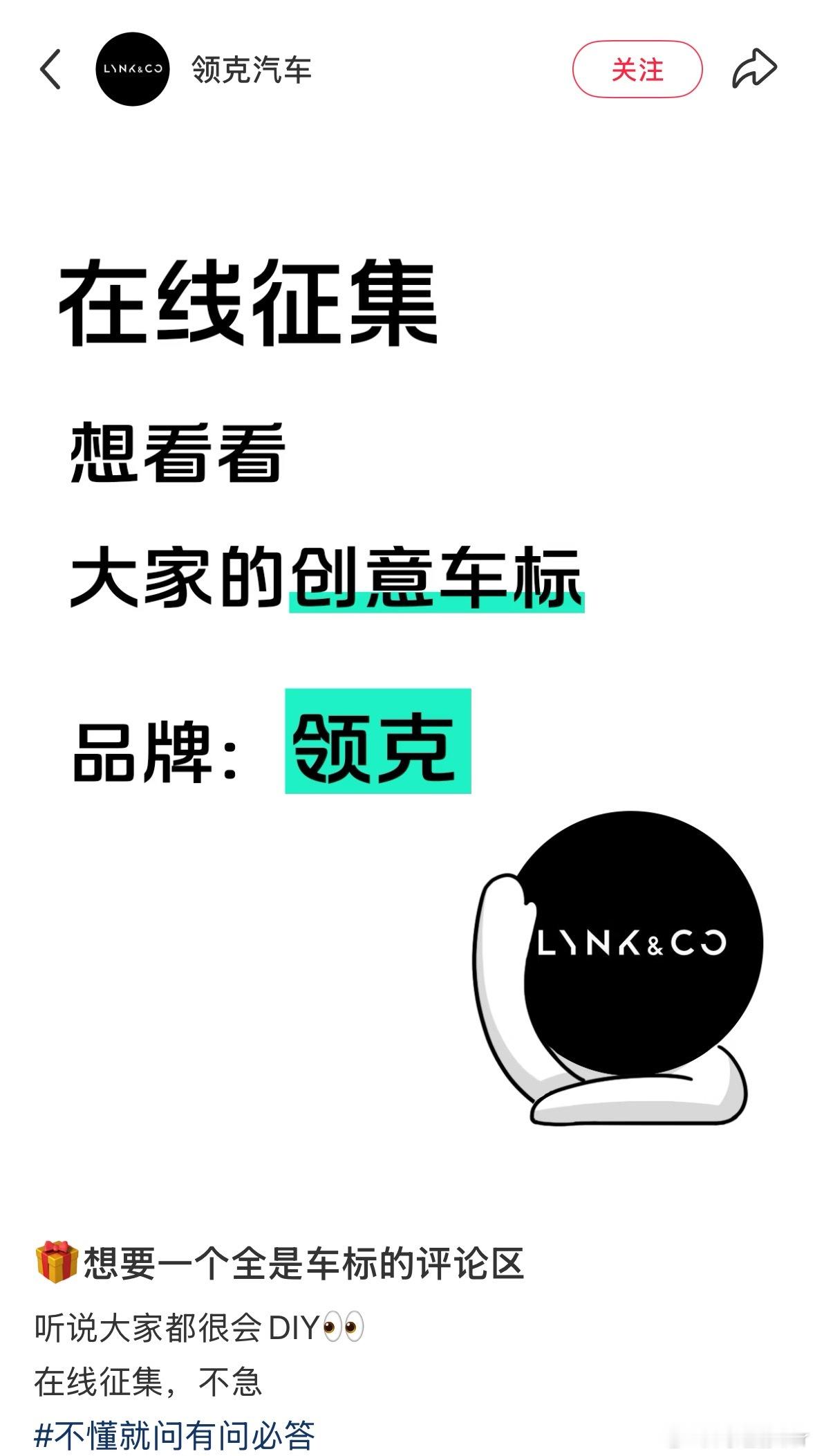 领克官方征集LOGO了设计师们快发挥一下要是真被选用就起飞了