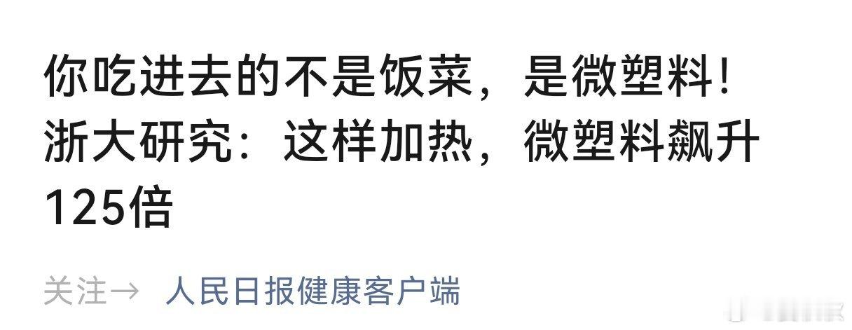 你以为,是在热饭,其实是在“吃塑料”。把这一条视频,转发给那些经常吃外卖的人吧,也许能帮他们一把。很多人有这样一个坏习惯:中午吃剩的外卖,连汤带菜,就放在那个塑料盒里,直接塞进冰箱。晚上懒得做饭,整个盒子塞进微波炉,“叮”几分钟,热乎乎的,连碗都不用洗,多方便。但是,你可千万别再这么干了。根据“人民日报健康客户端”,最近,浙江大学做了一个实验,结果挺吓人的。模拟老百姓的日常操作,用最常用的那种透明或白色外卖塑料盒,有的里面装水,有的里面装食用油(模拟油乎乎的菜汤),然后放进微波炉里加热。你猜怎么着?短短三分钟,装油的盒子释放出来的微塑料,数量多得吓人。尤其是那种比较软的塑料盒,释放量是只装水加热时的125倍。油里的重金属含量也跟着猛涨。这意味着什么?意味着当你加热一份昨天的红烧肉或者麻辣香锅时,随着热气腾腾的香味一起出来的,还有海量看不见的塑料碎屑和有害物质,它们全混在你的菜里,被你一口一口吃下去。这吃进去的,可不是什么好东西。这些微塑料小到能钻进你的身体组织,甚至细胞里,它和我们的健康问题关系不小。比如,有研究在人的骨髓里发现了它,这可能增加血液方面的疾病风险。还有研究说,痴呆症患者脑子里的微塑料,比一般人多。更直接的是对心脏和血管的威胁,有证据显示,血管里要是查出有微塑料,得心脏病、中风的风险会比别人高好几倍。它还会刺激你的肠胃,让一些肠道炎症更严重,甚至可能跟脱发、皮肤老化都有关系。有人说了,自己的外卖盒是5号的,属于“微波炉专用”。但浙江大学的科学家特别指出,就算是标了能微波加热的塑料,遇到油和高温这两个“帮手”,风险也会大大增加。油就像个“搬运工”,能疯狂地把塑料里的东西“拽”出来,溶进食物里。那么,对于普通老百姓来说,应该怎么办呢?第一,热任何饭菜,都把塑料盒里的东西倒出来,换成玻璃碗或者瓷碗。第二,少用一次性塑料餐具装热食、热饮,能用自己的杯子、饭盒最好。第三,多喝家里烧开的白开水(最后一点水不要喝),少喝塑料瓶装水,因为烧开的过程,能让很多杂质沉淀。第四,喝茶尽量别用那种滑溜溜的塑料茶包。第五,吃鱼虾螃蟹的时候,最好把内脏去掉,因为海里的微塑料容易在那里堆积。说到底,微塑料现在无处不在,我们没法完全躲开,但可以减少“吃”进去的量。这些塑料盒,它从厂家出来,装一次外卖,使命其实就完成了。是我们自己图省事,让它超负荷工作,又是装油,又是进微波炉,结果把它自己都“融化”进了我们的食物里。下一次,你要是看到,家附近的早餐店图省事,用塑料袋套在餐具外装饭菜的话,可千万警惕一些哦。这样加热外卖餐盒微塑料释放飙升晏秋秋