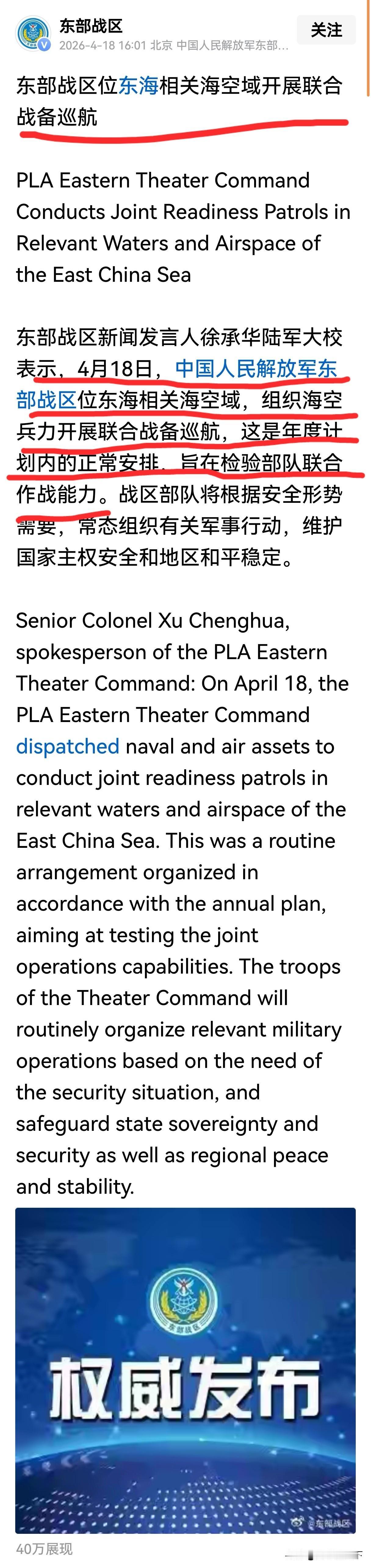 昨天发表评论说,这次日本挑衅中国主权太露骨,不同一般,公然独自穿航台湾海峡,不仅不是跟在美国人后面一块穿,而且还停留那么长时间,国际法是属于“恶意通过”,中国不会与他们善罢甘休。事关中国核心之核心利益,中国一定会坚决反击,只是没想到如此之快,解放军东部战区今天宣布,同时使用中英文,位东海相关海空域举行海空兵力战备巡航,尽管是年度计划内的正常安排,但时间如此巧合,显然是有备而来。众所周知,美国每次在台海挑衅,中国的反击和反制力都会倍增,更何况是针对日本,发起十倍反制力都不要感到意外。美国不管日本军国主义者出笼,中国必须要管,一定要管。