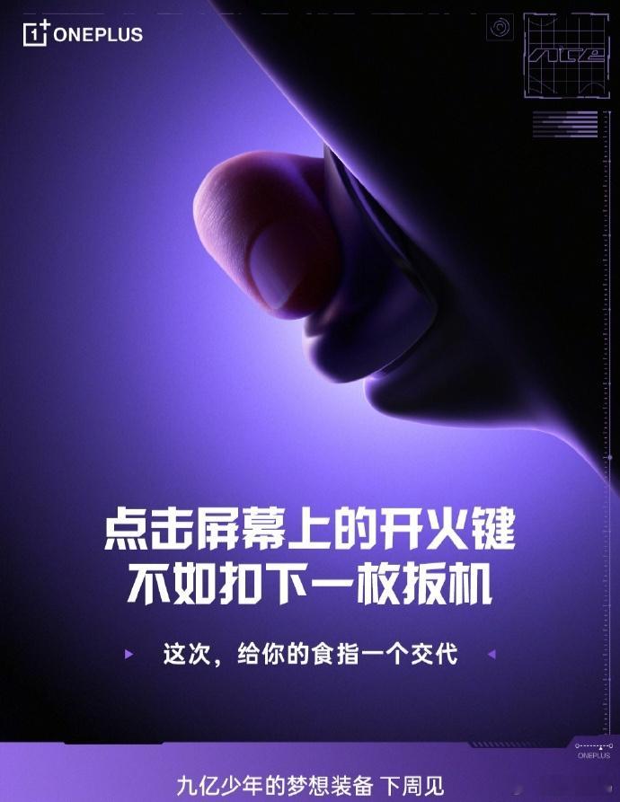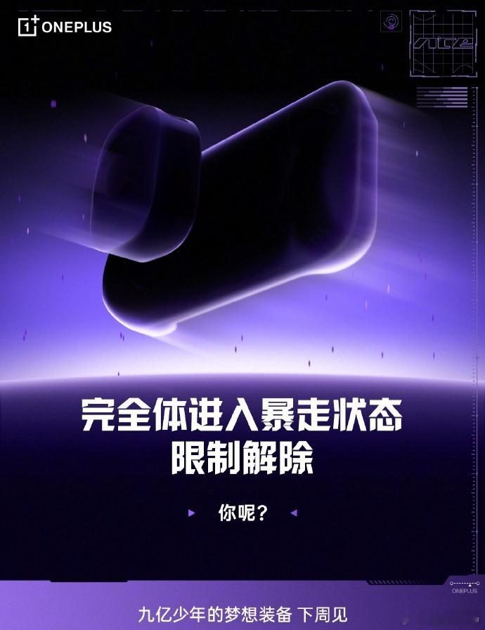一加宣布一加 Ace6 至尊版下周见,号称“九亿少年的梦想装备”。从预热内容来看,该机将主打游戏性能,在操控上带来不同体验。