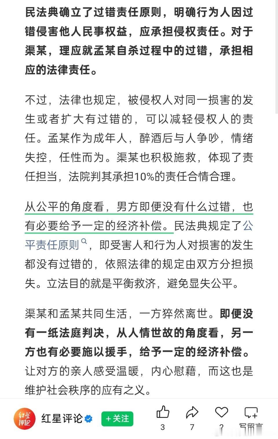 🔻媒体:从公平的角度看,男方即便没有什么过错,也有必要给予一定的经济补偿。女友跳楼男友未拽住担责冤不冤