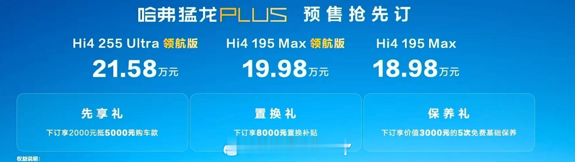 哈弗猛龙PLUS预售价格区间18.98-21.58万元不知道大家有没有猜对3款配置之前试驾的时候感受很深的几个点视频都说了轴距加长112mm5座/7座双版本Hi4 电混四驱纯电255km,综合1000km车顶激光雷达+Coffee Pilot 3 支持高速NOA、城市领航配置在当前方盒子肯定是没问题的各位觉得如何?哈弗猛龙PLUS