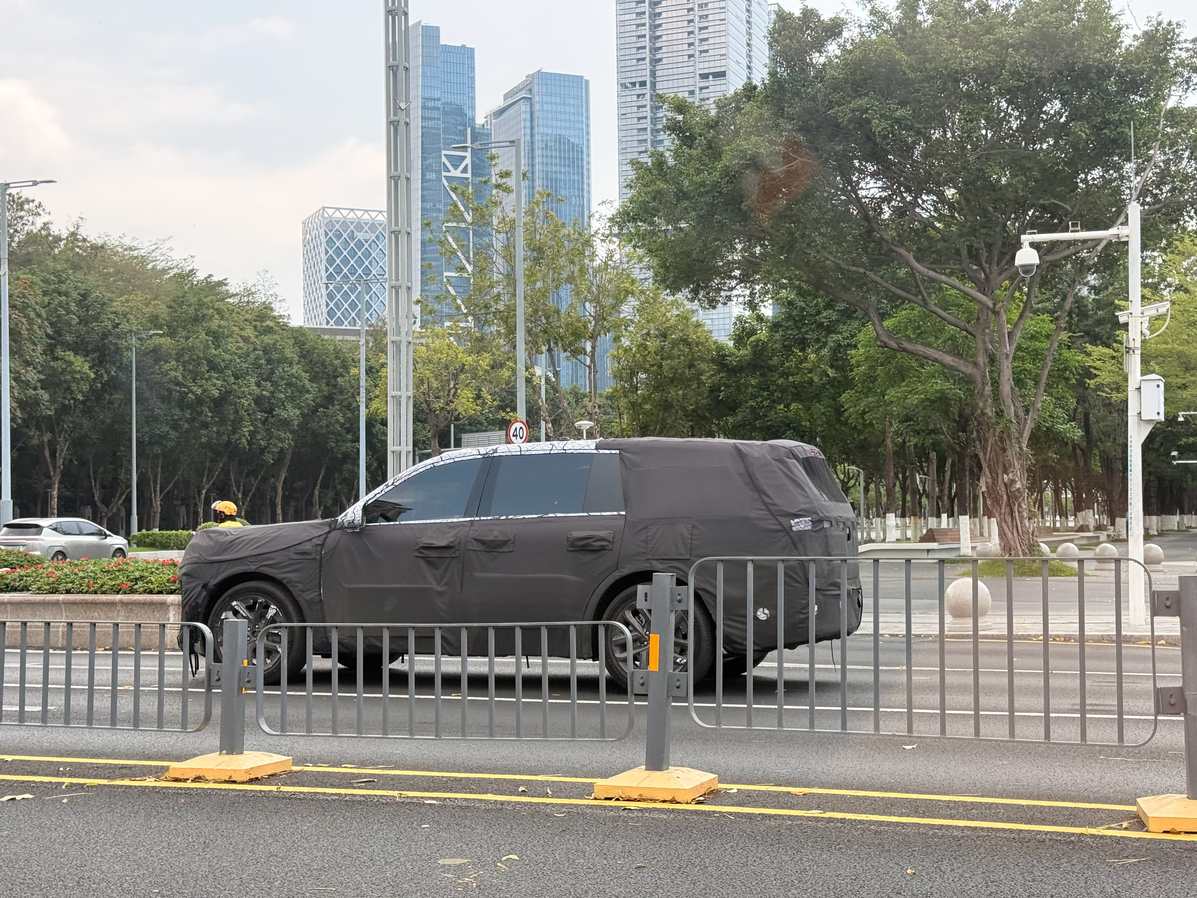 遇到一台重伪装车在测试看起来又是一个全尺寸SUV是谁家的新车呢?大V聊车