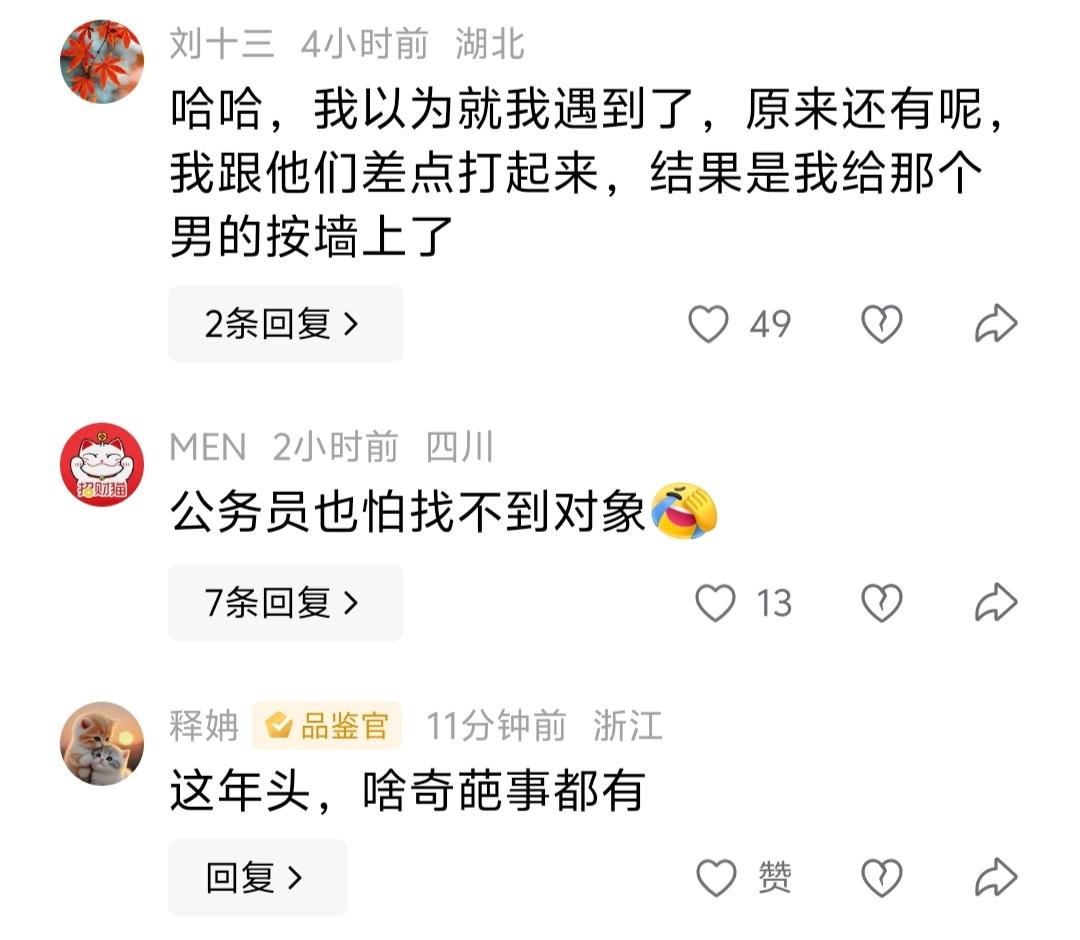 "00后女子花20万相亲遭婚介洗脑,被强行留人监视,逼单手段如电诈。择偶需谨慎,莫让鹊桥变陷阱。" 网友热评:哈哈,我以为就我遇到了,原来还有呢,我跟他们差点打起来,结果是我给那个男的按墙上了。