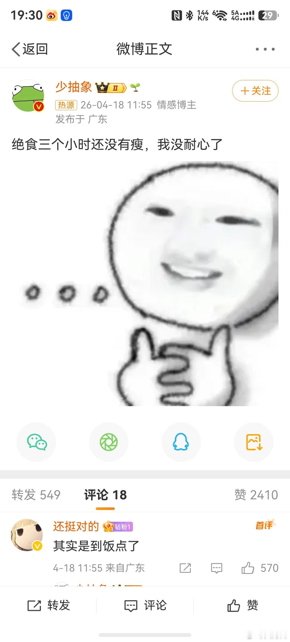 绝食三个小时还没有瘦,那很辛苦了,终于熬到下一个饭点了,没有加餐就是最大的胜利。