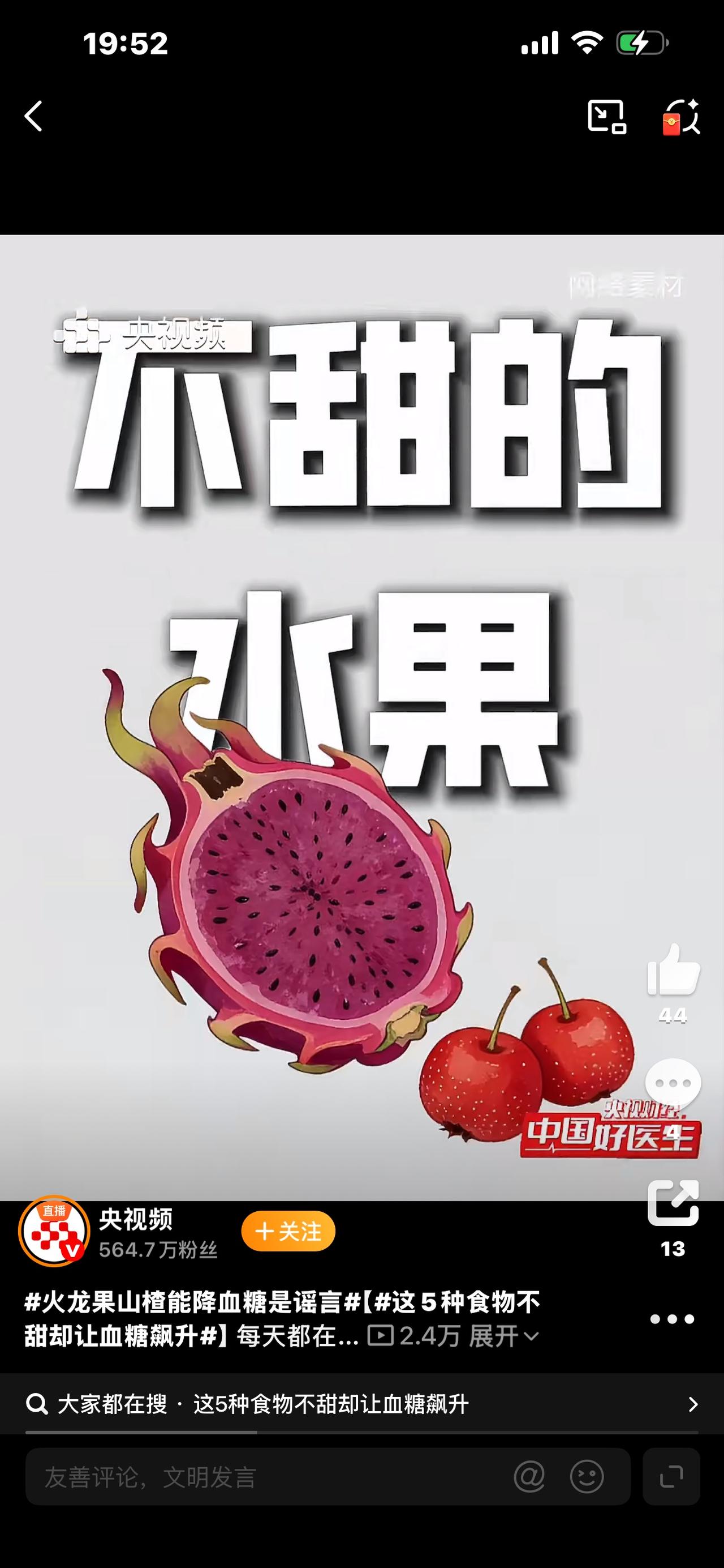 坑惨无数糖友!火龙果+山楂降血糖是谣言,越吃血糖越高! 家里有糖尿病人的一定要注意了!最近网上疯传的“火龙果配山楂,空腹血糖稳降”,不知道害了多少人,越吃血糖越失控,千万别再上当了! 很多糖友一听说有“天然降糖方”,赶紧天天吃,以为不用吃药就能稳血糖,结果空腹血糖从7点多吃到10点多,头晕乏力、并发症加重,到医院才知道自己被骗惨了。 真相来了:火龙果、山楂不仅不能降糖,反而会让血糖飙升! 火龙果看着不甜,实则升糖指数不低,大量果糖进入身体,吸收极快,血糖直接往上冲; 山楂更是高酸高糖,吃着酸,含糖量远超想象,尤其山楂片、果丹皮,加了大量糖,堪称血糖杀手。 所谓“降糖奇效”,全是商家编造出来的伪科学,没有任何医学依据,纯粹拿糖友的健康开玩笑。 真正靠谱的控糖方法,从来不是偏方,而是管住嘴、迈开腿、遵医嘱吃药。 少信偏方,多吃粗粮绿叶菜,少油少糖,规律监测,才是对自己身体负责。 别让无知伤害健康,转给家里的糖友和长辈,远离谣言,科学控糖,平安才是福!糖尿病水果选择 抗糖误区 升糖低的食品 升糖快的水果 蜂蜜降血糖 升血糖蔬菜
