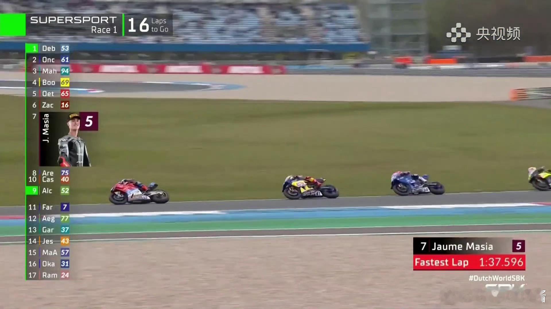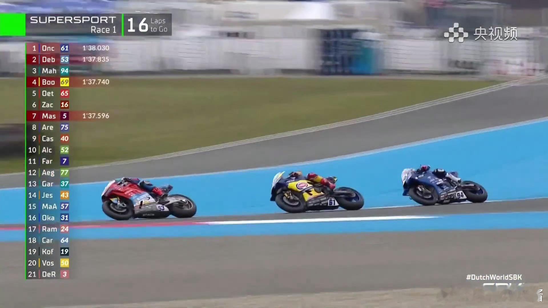 世界超级摩托车锦标赛荷兰站SSP组决赛第一回合,第二位出发的张雪机车53号车手瓦伦丁·德比斯在第二圈抓住机会,超越前车升至第一。 张雪机车