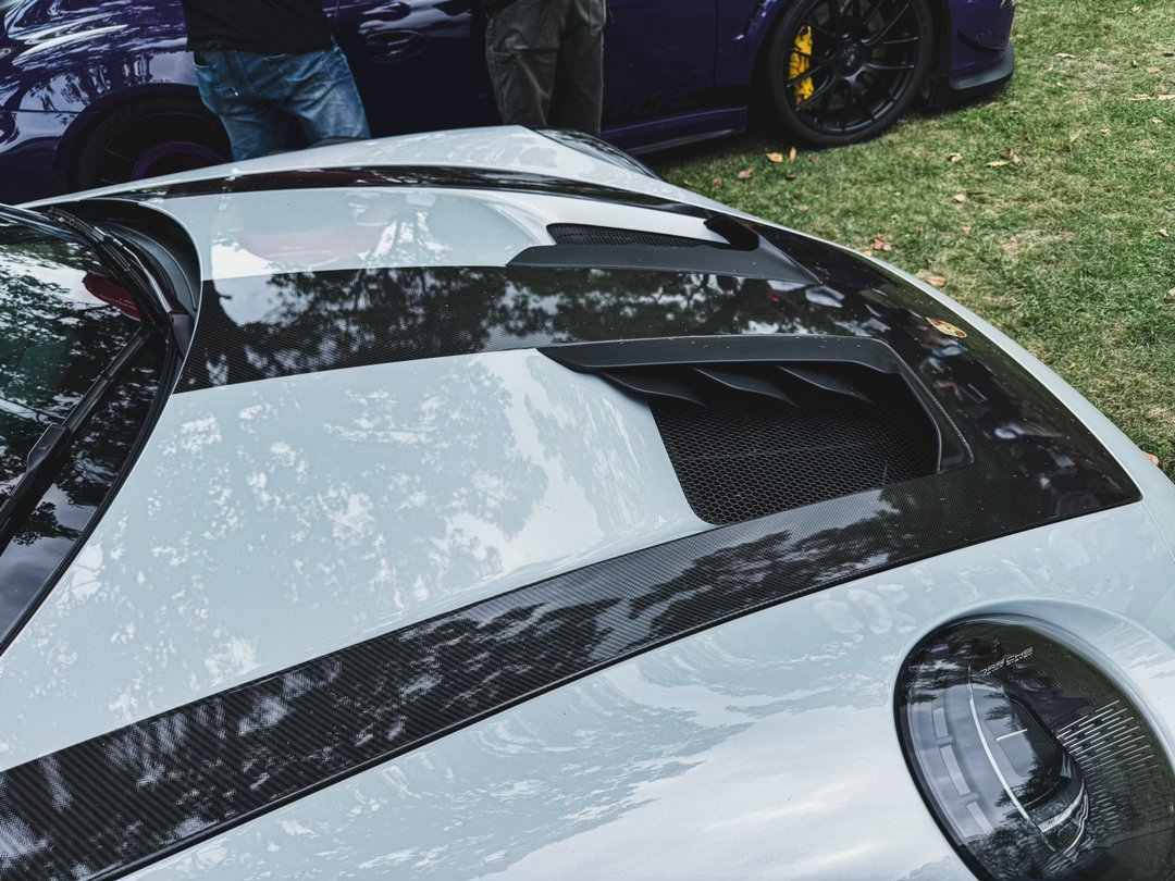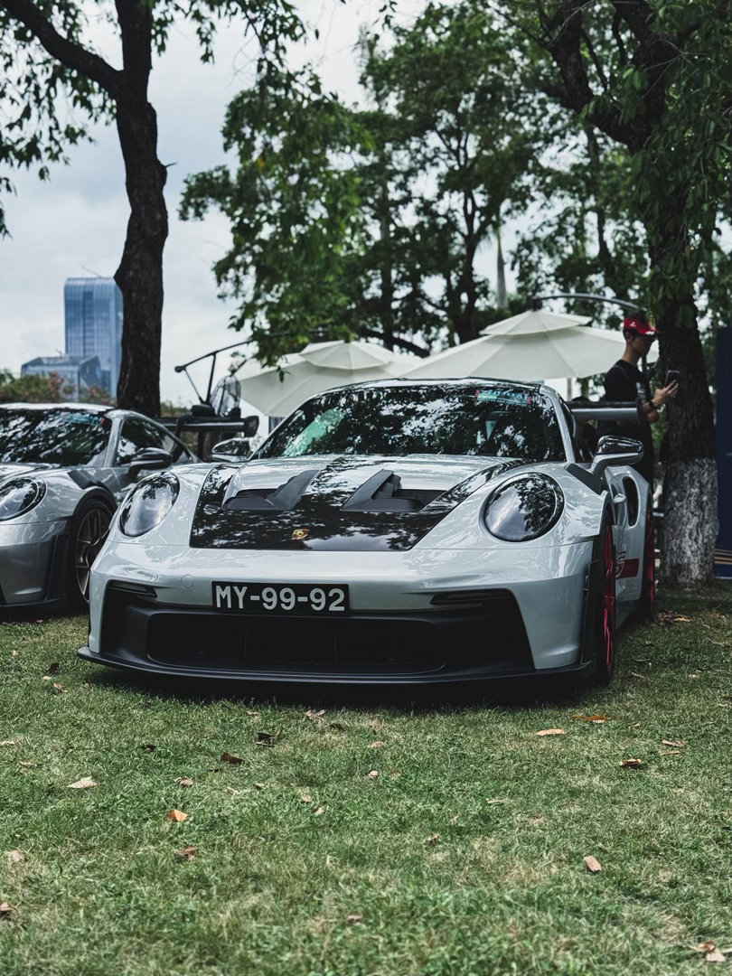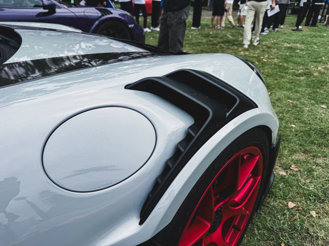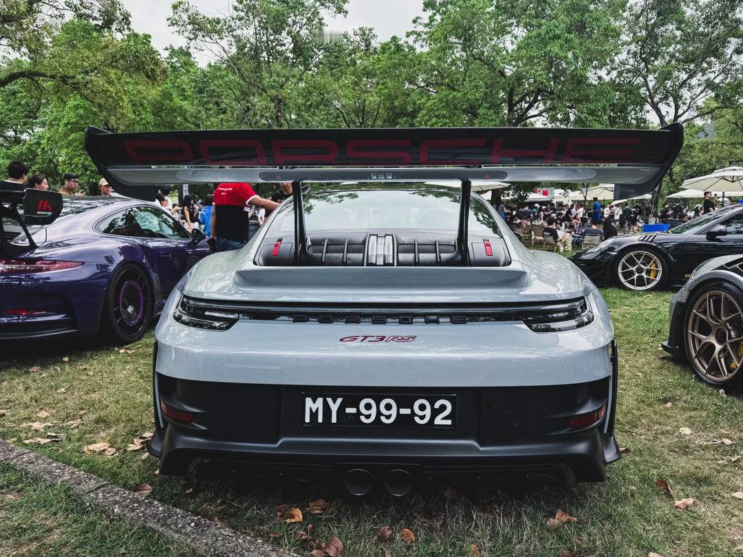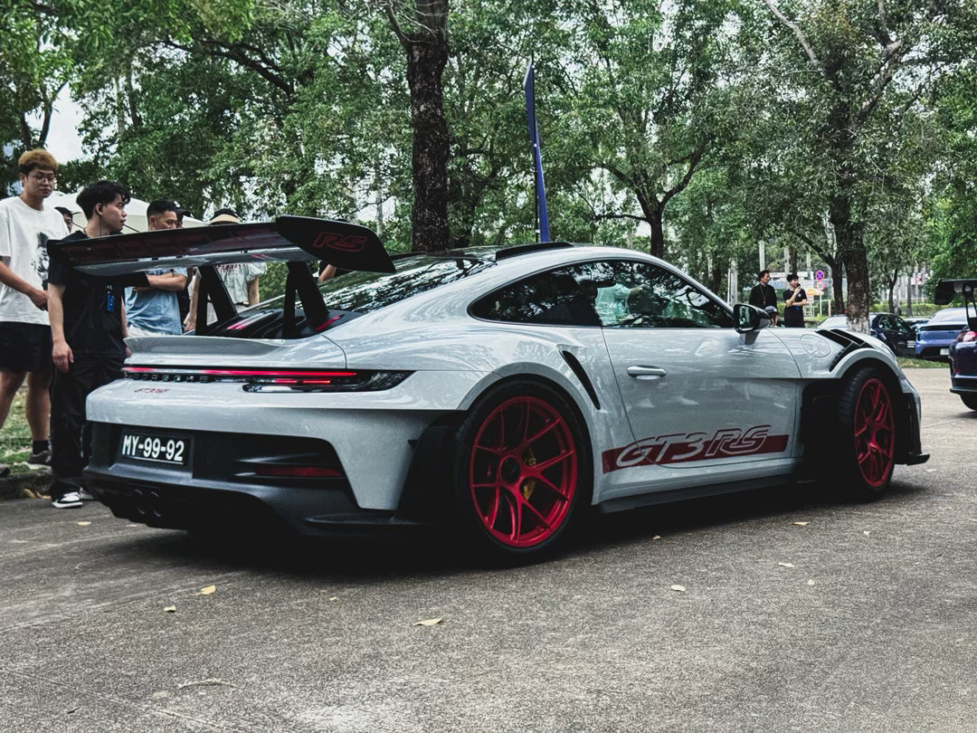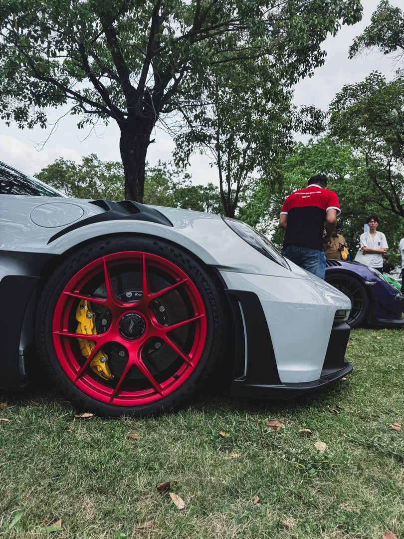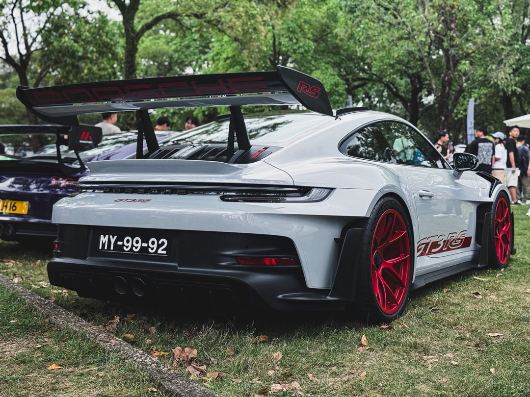 保时捷911 GT3 RS ~银色配磨砂红的轮毂,实在是太顶了!超大的鹅颈大尾翼、碳顶、挖孔风道……“狂”的没边了⚡跑车集锦