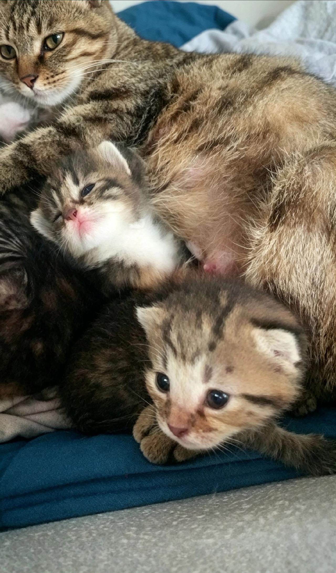 五只美国卷耳猫,一只三花,一只中华田园橘猫