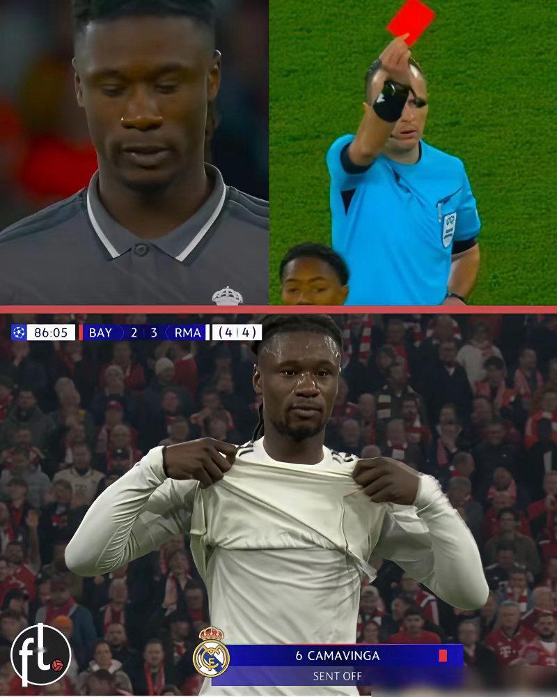 年薪1250万欧,违约金10亿,卡马文加这一脚,把皇马的欧冠踢飞了。86分钟,球队拼命追分,他犯规后死抱着球不给拜仁,裁判就在眼前,黄牌一亮,直接红牌罚下。贝林厄姆都看懵了。这已不是头一回,去年欧冠同一坎,他也掉链子。皇马刚用顶薪长约锁他到2029年,可高层耐心快耗尽了。十亿违约金锁的是天才,不是庸才;安切洛蒂要的是战士,不是孩子。足球皇马卡马文加