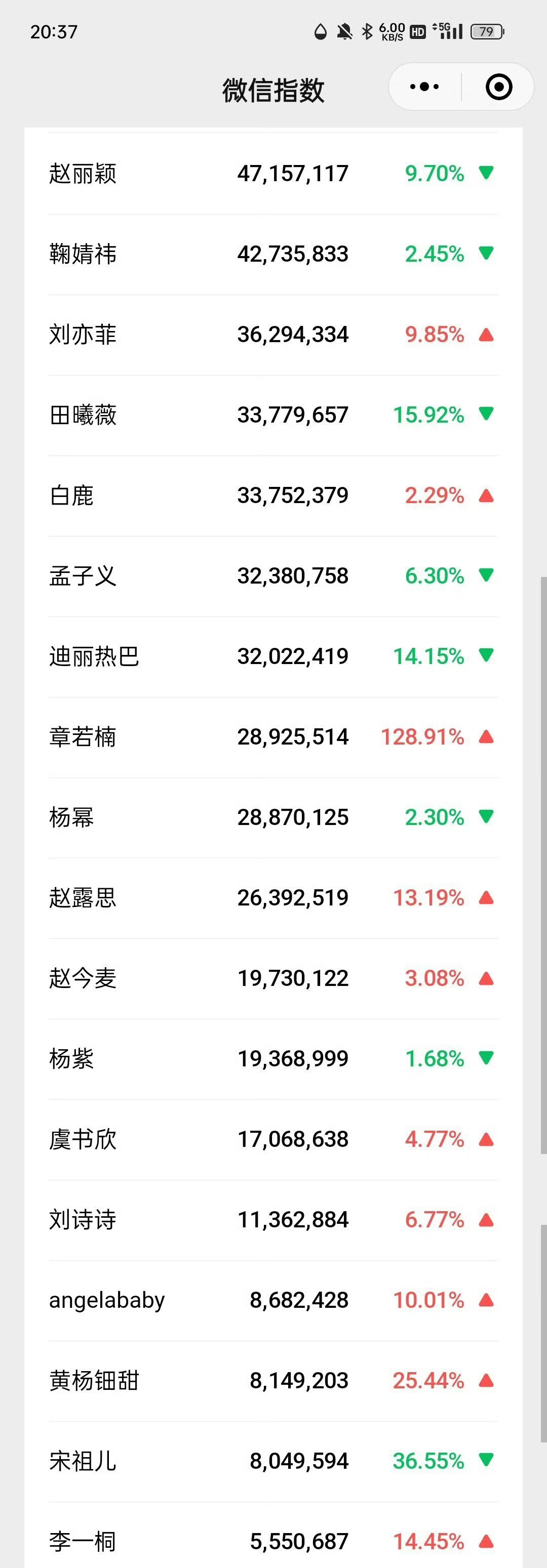 女明星微指最新一览,赵丽颖没播剧没出山却还是第一,热度太大了🔥