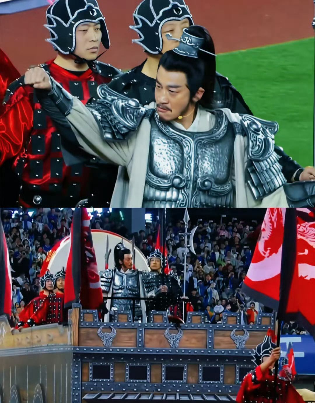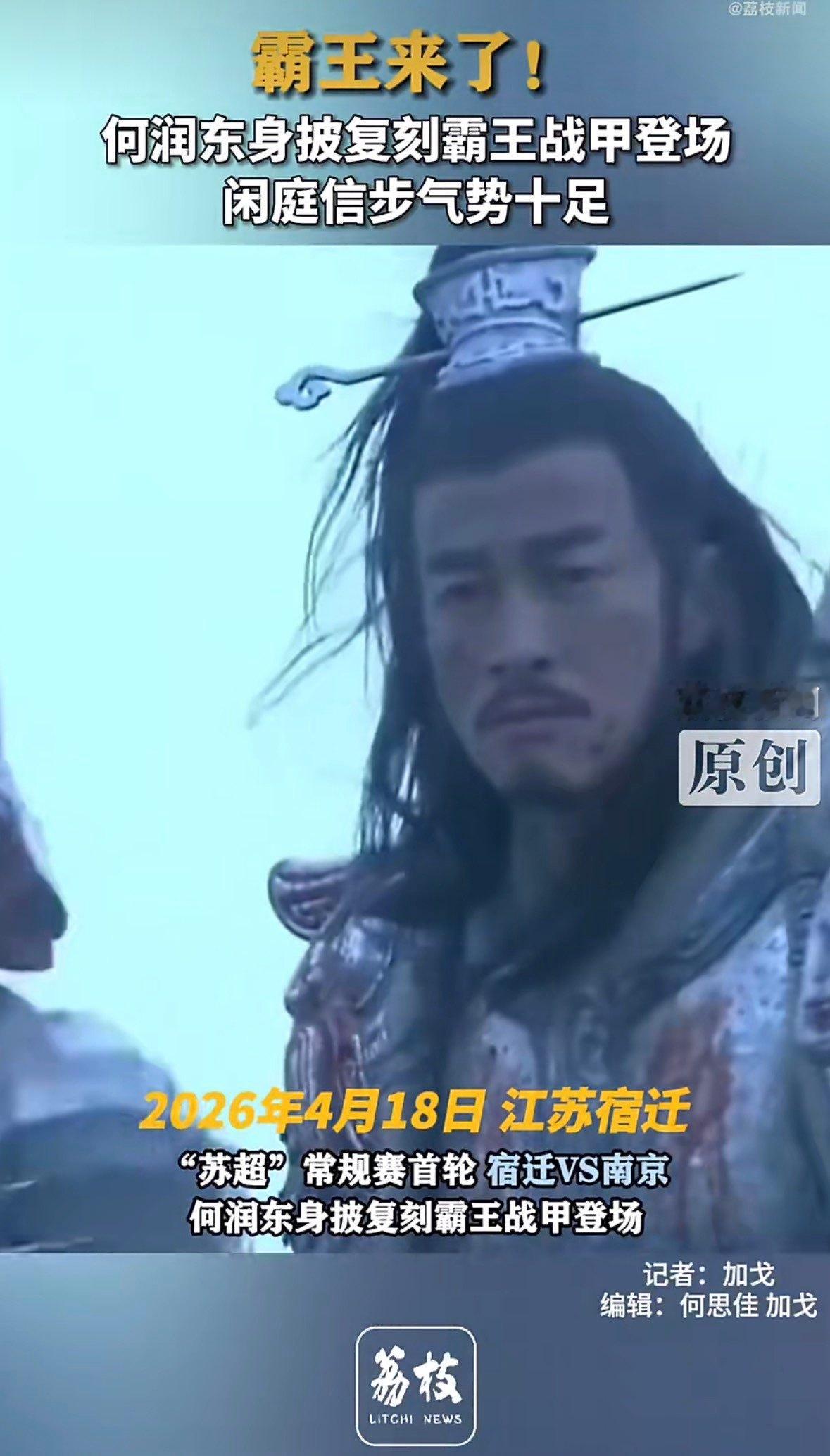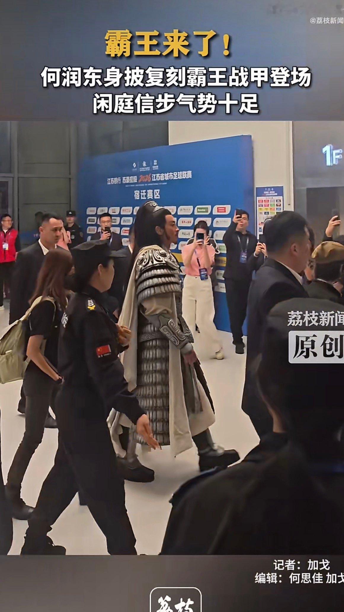 何润东全妆扮项羽去苏超给宿迁队助威,没骑马照样赢球!这哥事业运绝了何润东霸王全妆