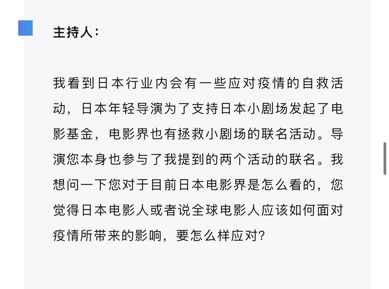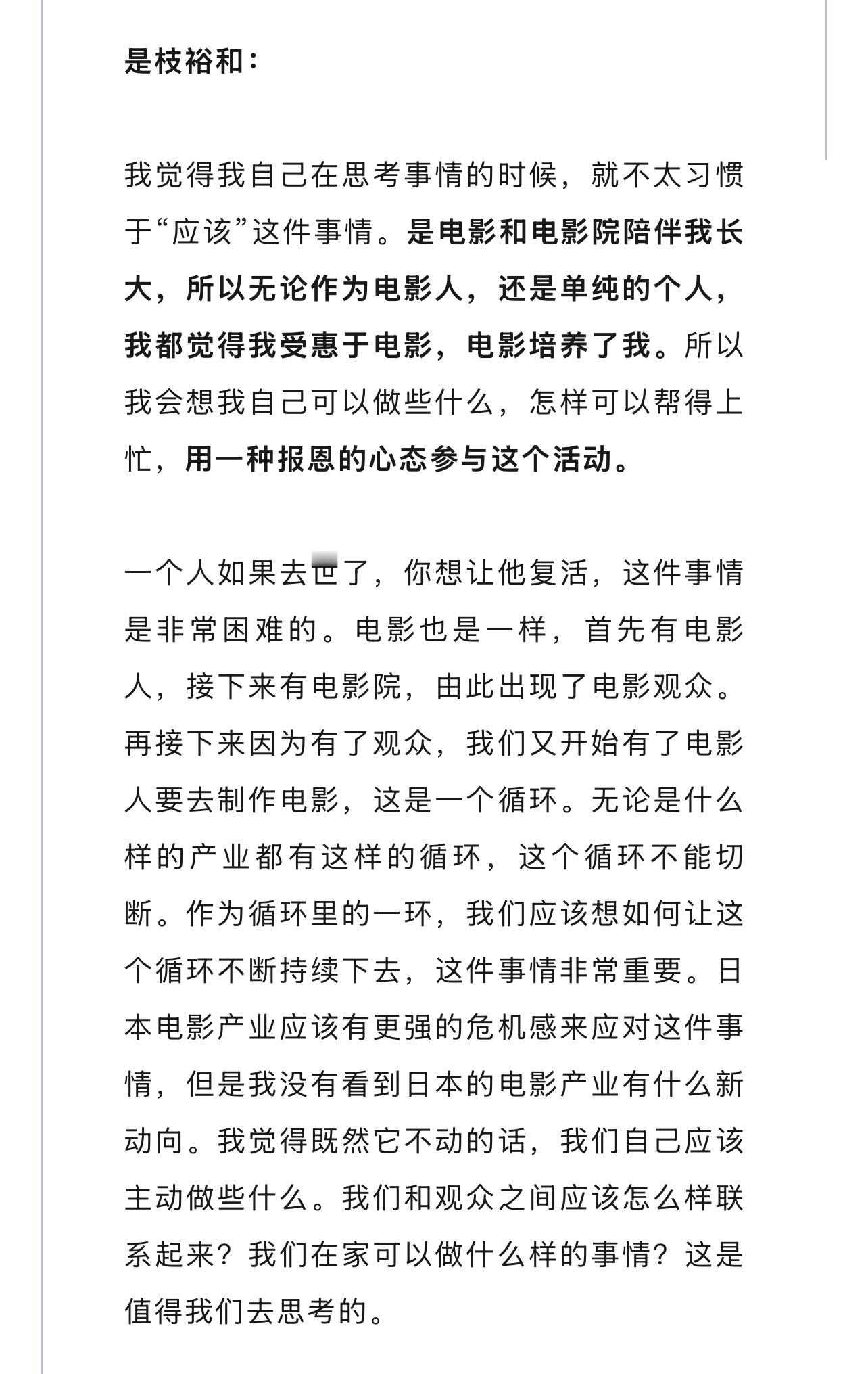 是枝裕和:我觉得我自己在思考事情的时候,就不太习惯于“应该”这件事情。