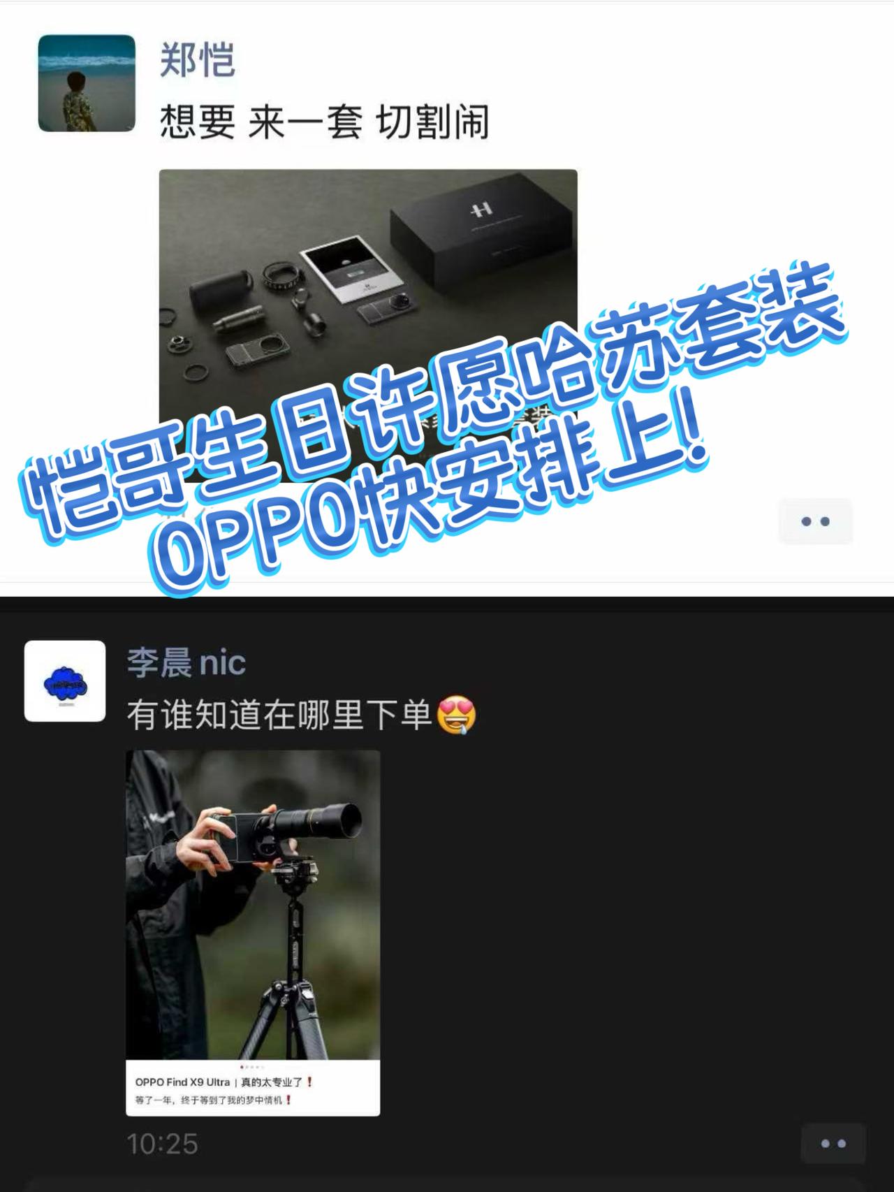 OPPO快给恺哥安排🎂生日许愿哈苏 这是咋回事啊?恺哥在线许愿? 昨天好像是郑恺40岁生日 有网友爆料了他的生日发圈的动态 看着像是在许愿🤣 配图是OPPO Find X9 Ultra哈苏大地探索家大师套装 听说4月21日就要发布了 看来郑恺生日想要这套装备? 网友都在喊OPPO懂事点,赶紧安排上🧐 - 之前李晨nic也发圈问去哪买这套 这哈苏大师版居然吸引这么多明星 到底好在哪啊?我做了功课👇 - ✨全套影像配件 增距镜 Ultra+哈苏专业手柄手机壳+67mm滤镜转接环+收纳包+自由漫步肩带,可以说相当专业 整体致敬十万级X2D相机,还自带专属收藏编号 一整套装上简直不要太帅了 - 关键是Find X9 Ultra本身影像堆料也到顶了 搭载哈苏五摄镜头,支持双2亿像素+10倍光学变焦 配上增距镜,演唱会拍爱豆、旅行拍风景都超牛 难怪恺哥都想要! OPPO看到快给安排,我也想要呜呜呜!🙏 郑恺 哈苏 OPPO Find X9 Ultra大师套装开箱 OPPO Find X9 Ultra 数码爱好者