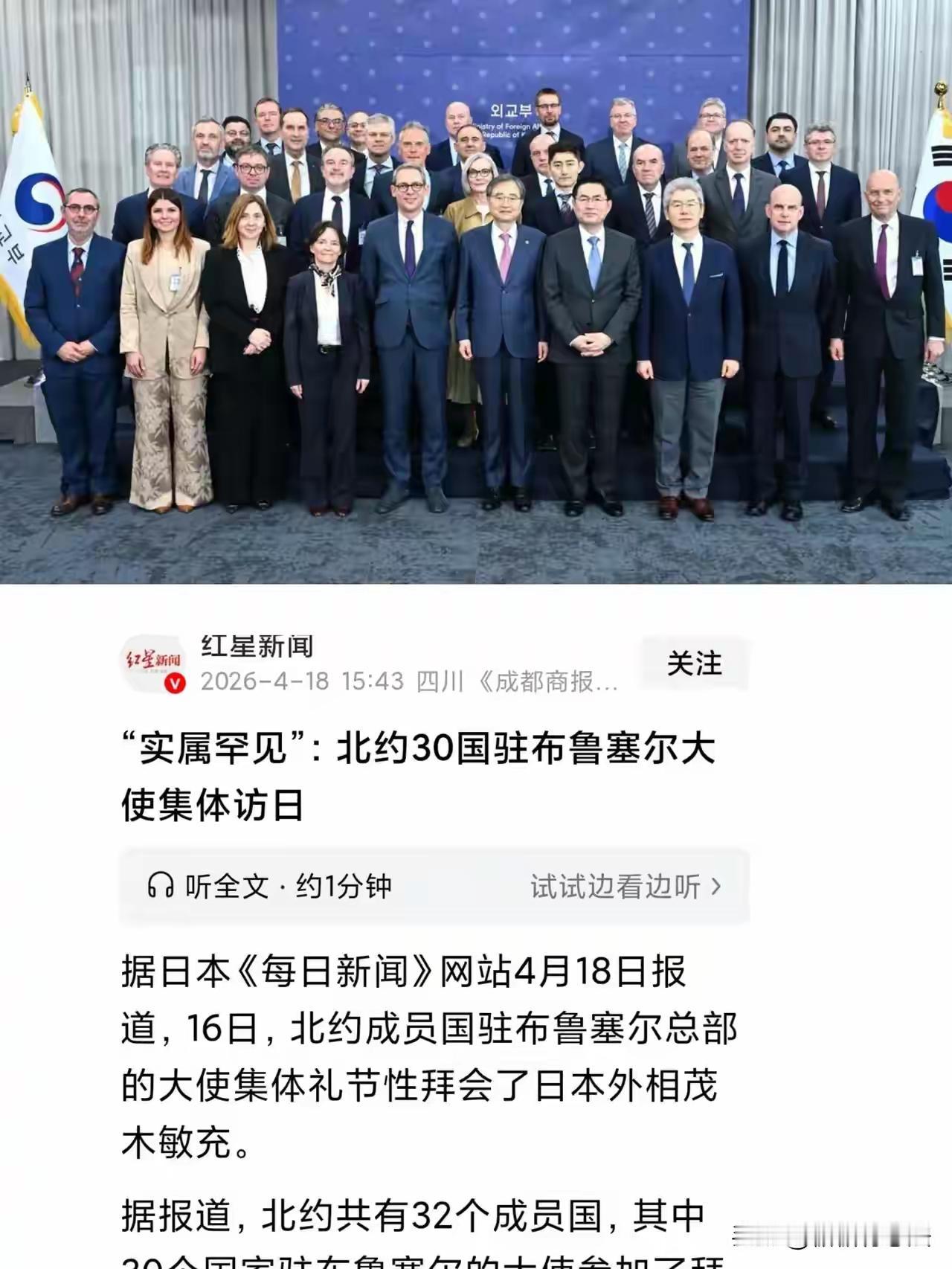日元贬值,经济下滑,财产贬值,日本有准备做第二个乌克兰的苗头。 北约30国驻布鲁塞尔大使组团访日,系北约史上最大规模成员国使节集体访日行动 表面说是强化印太区域协作、深化防务合作与军工对接为公开目标。 实则暗藏北约亚太化推进、应对联盟内部危机及各方利益交换等多重深层意图。 日本右翼分子有一种错误认知,他们认为只有和中国发生战争,北约会站在日本一边全力帮助日本。虽然和中国发生战争日本会付出惨痛代价。 到也会迎来新的洗牌,可以让日本涅槃重生! 北约+乌克兰拖不垮俄罗斯,美以打不垮伊朗。 日本右翼分子如果真觉得拉上北约就能破坏地区和平,那就是太天真了!
