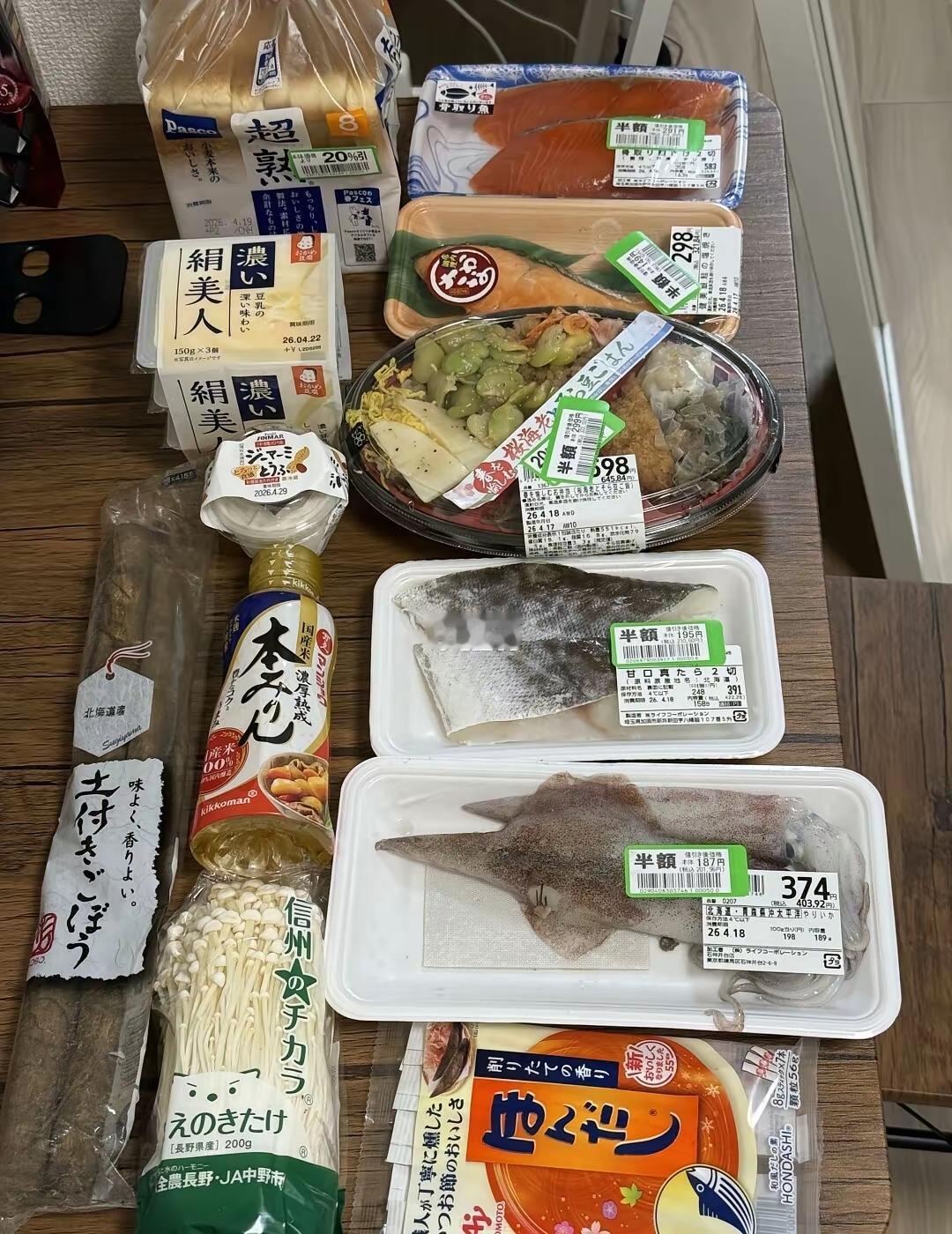 在日本的华人问大家这些东西一百块钱贵不贵? 他下班刚好碰到超市打折,这些食物都是打对折,他问网友日本这样物价贵不贵? 这样还是有一定的参考价值。 如果不打折这些东西要4700日元,两个小鱿鱼,一袋面包,一盒寿司……都是不值钱了普通食材,和上海比,应该是上海物价的两倍左右。 打折后和上海差不多,但输在里面一些食材已经不新鲜了!