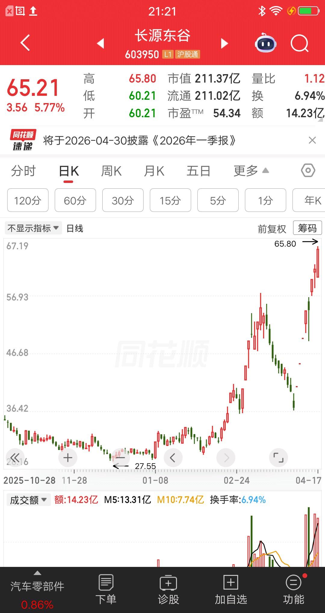 一位山东的股民,在37.01元买入长源东谷,目前浮盈76%了。运气好到爆炸呀,天上掉馅饼的好事,居然被他捡到了。 他在2月份就关注了长源东谷,当时是跟着潍柴动力涨的。公司主营发动机缸体和缸盖,客户有潍柴动力和康明斯。后面股价迎来一波持续杀跌,他在3月23号买入500股。 没想到刚买完就停牌了,公司收购康豪机电100%股权。标的公司是热交换系统供应商和柴油机动力单元集成商,客户有潍柴动力,卡特彼勒和康明斯等。 复牌后一字涨停,他开心得手舞足蹈,高兴得跳了起来。心想这次一定要拿住了,不跌停坚决不卖。 他发帖炫耀说“第一次吃超级大肉,这操作秀不秀😎”。很多股友说,运气太好了吧。估计还能再涨,一定要拿好了。 印证了一句话,有时候运气比实力更重要。