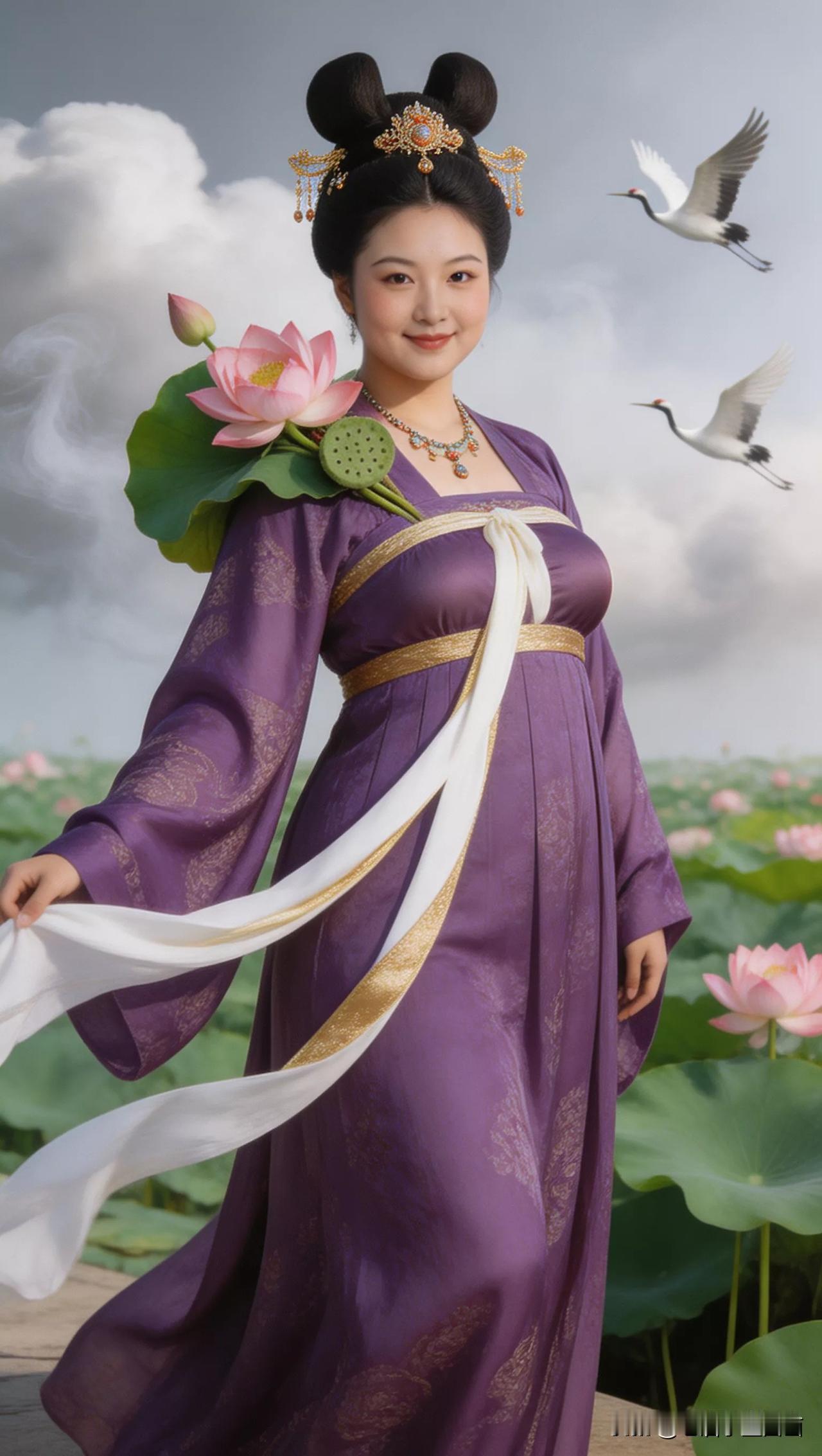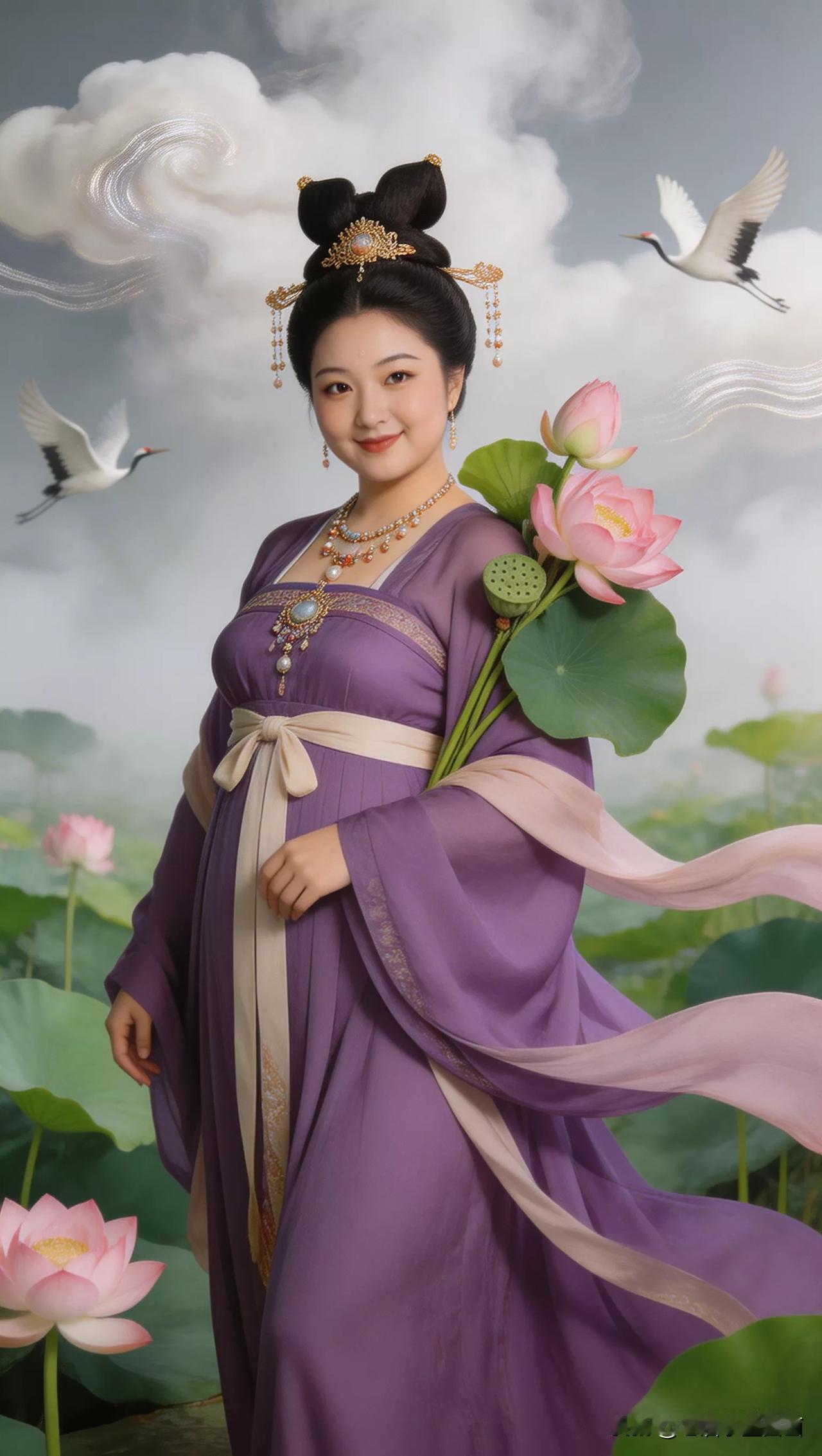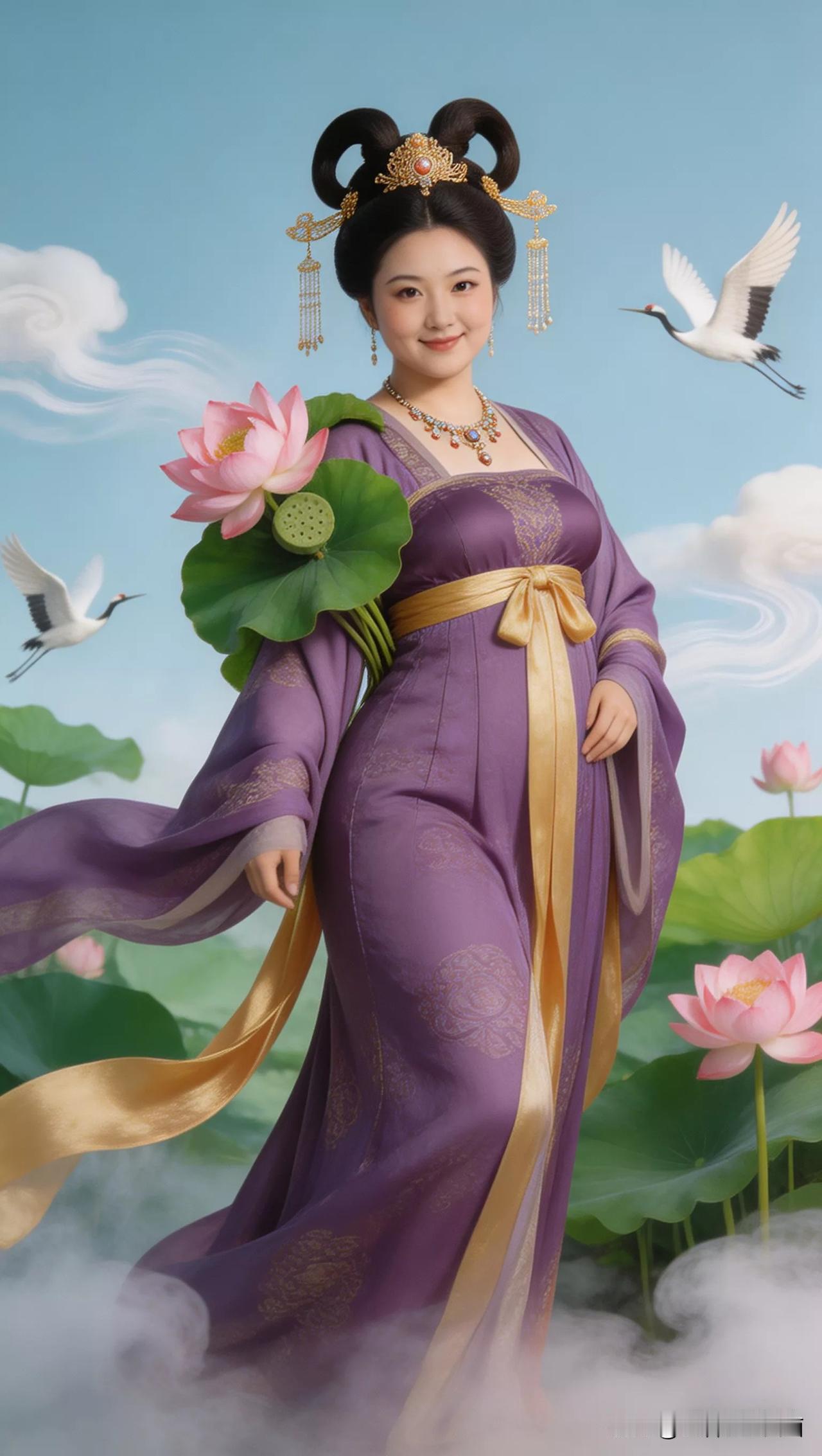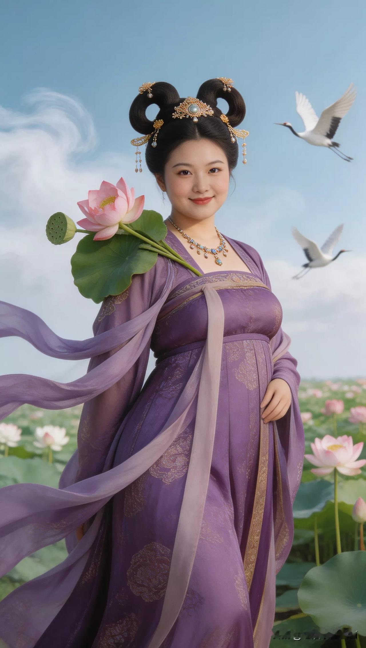 仙子手持莲花,鹤舞云间。张立启原创书画AI作品古仕女发髻服饰集锦首发第702期ai中式工笔 AI绢衣工笔画 AI牡丹仕女图 AI工笔仕女图 ai画工笔 ai唐韵仕女照 AI中式写意照 ai花鸟仕女图 古风仙女大片 张立启原创书画AI作品首发 张立启原创书画 汉服纱衣古仕女