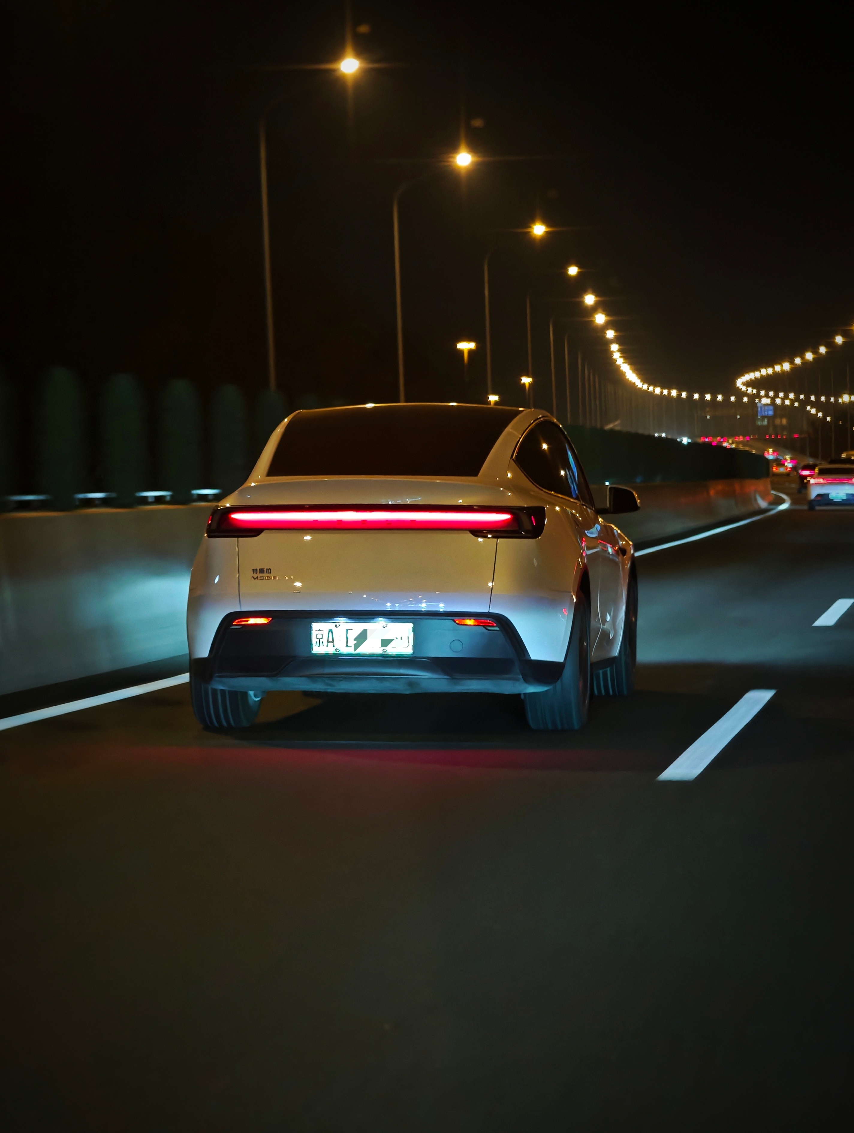 夜里特斯拉Model Y的漫反射尾灯看着是真tm漂亮