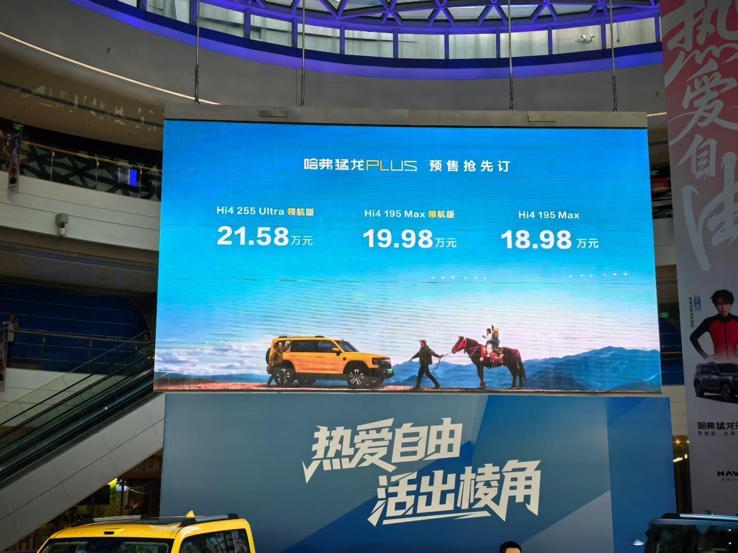 长城下一个爆款?CLTC纯电续航255km!哈弗猛龙PLUS开启预售:预售价18.98万起哈弗猛龙PLUS预售18.98万起4月18日,哈弗猛龙PLUS开启预售,共推出3款配置,预售价区间为18.98-21.58万元。车辆搭载长城Hi4智能四驱电混技术,其中 1.5T 发动机最大功率为 115 千瓦,系统综合最大功率达到 330 千瓦,综合最大扭矩为 660 牛 · 米,零百加速 5.8 秒,提供4大板块28项技术升级,最长CLTC纯电续航255km,WLTC综合续航1000km+,最大涉水深度580mm。哈弗猛龙 PLUS 延续了猛龙家族经典的“方盒子”造型,并融入“方圆之道 · 棱角之美”的设计理念,整体造型硬朗方正。车辆通过 37 处圆角设计优化了风阻表现,风阻系数降低约 40counts。前脸配备全新样式的棱盾式中网与棱眸大灯,中央车标采用可点亮设计。那么,这款堪称是“大号猛龙”的哈弗硬派SUV新作,会是大家的购买首先吗?