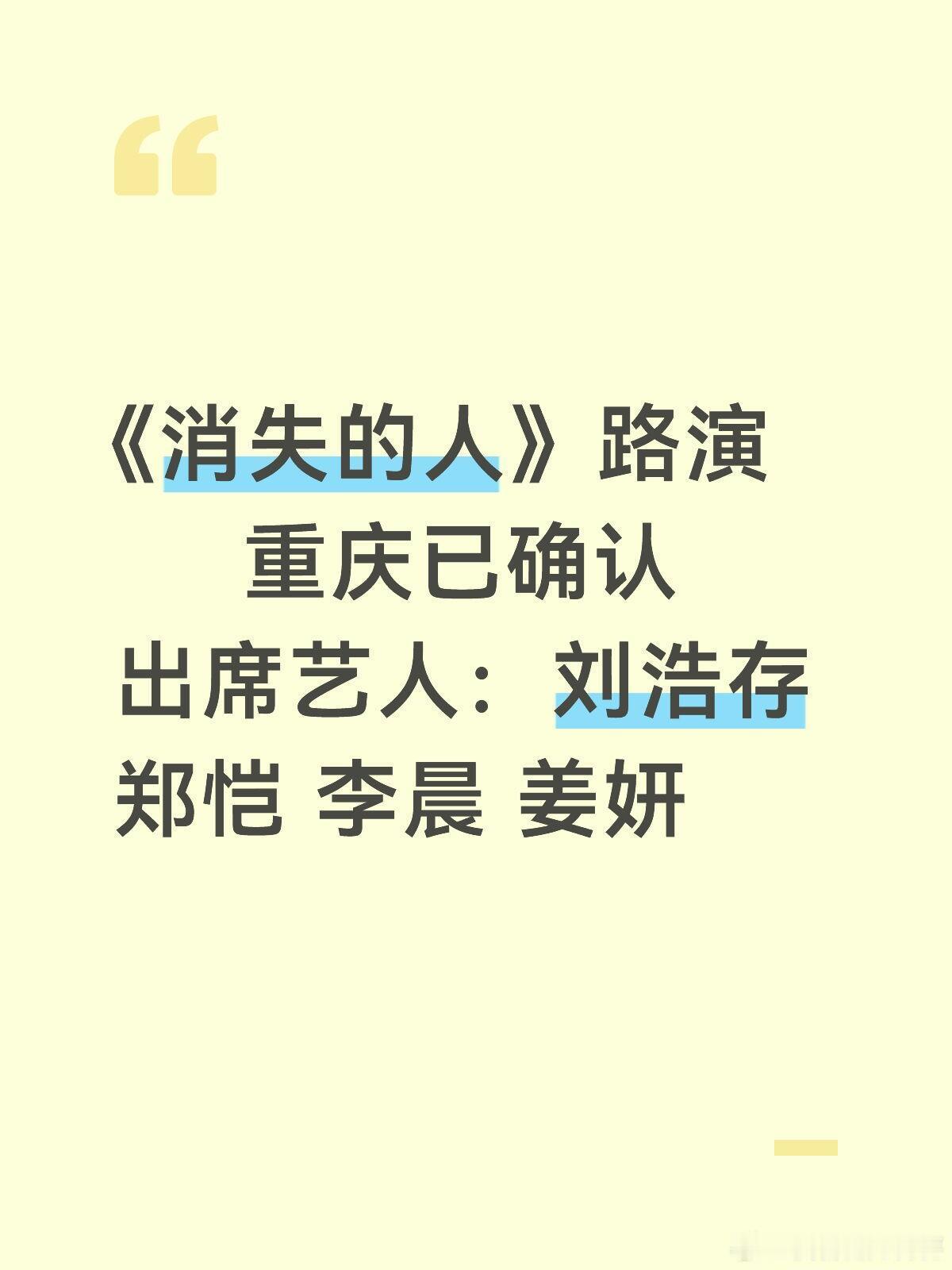 📣消失的人重庆路演确认🌟重庆《消失的人》路演 5.2号出席艺人:刘浩存 郑恺 李晨 姜妍