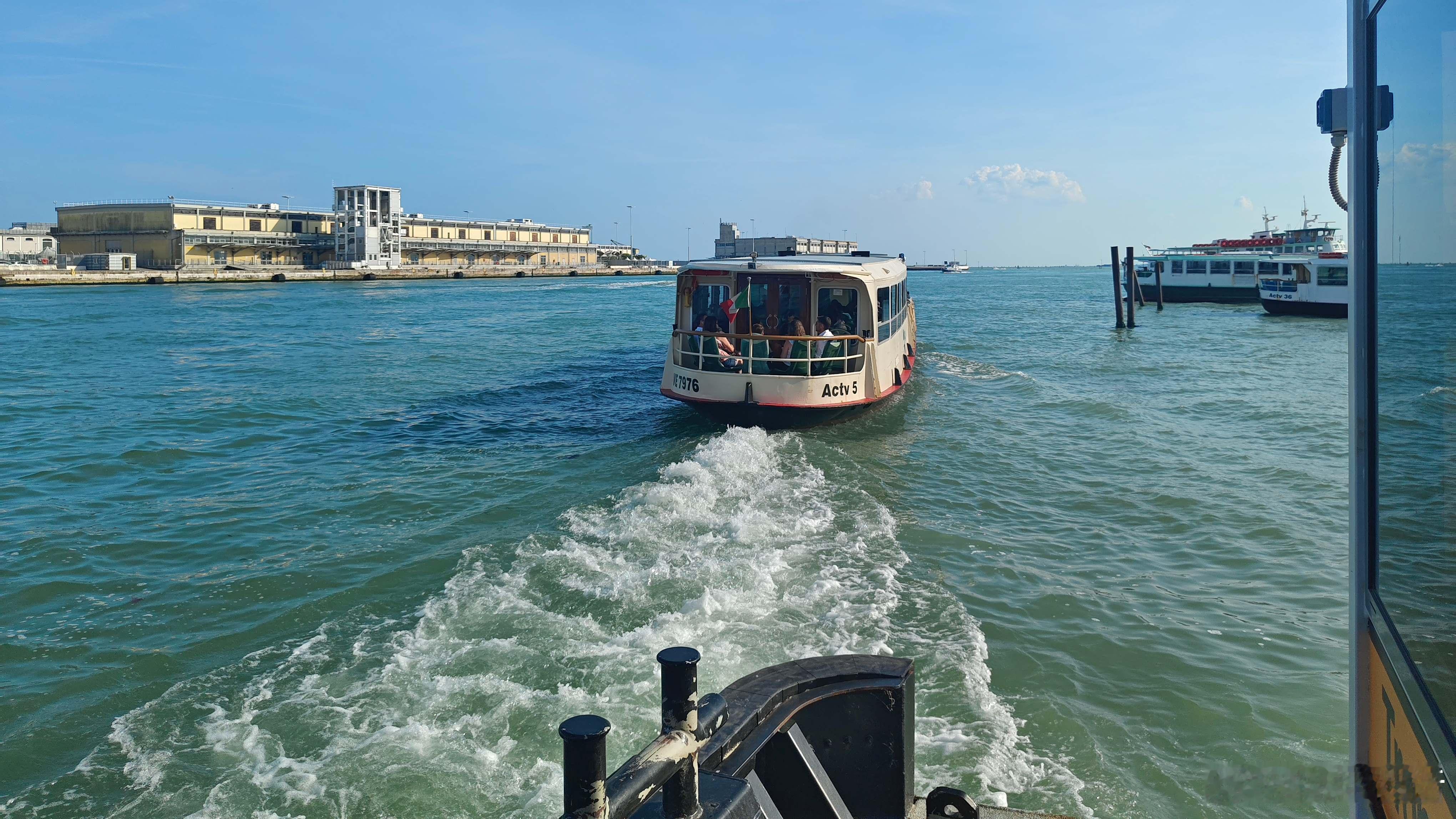 威尼斯作为小学课本内容,在国内知名度颇高,之前短暂的呆了一天,第一感觉就是水不算干净(图2)。水上巴士(图3、图4)和贡多拉(图5、图6)确实有特色,但是带来的震撼也不算大;第二天走的时候威尼斯马可波罗机场倒是给我带来一丝亲切,航站楼中的标牌基本都有中文!(图7)
