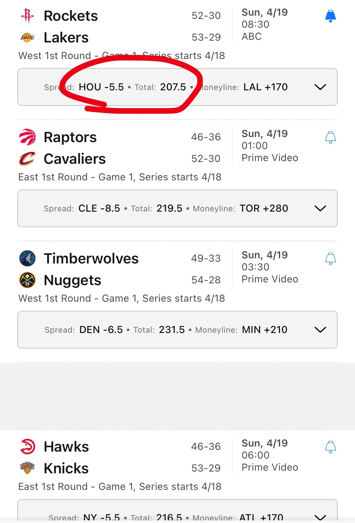 所以从总分上看确实有机会,大多机构维持在207.5或者206.5。明天的5场比赛湖人与火箭也是总分最低的球队。