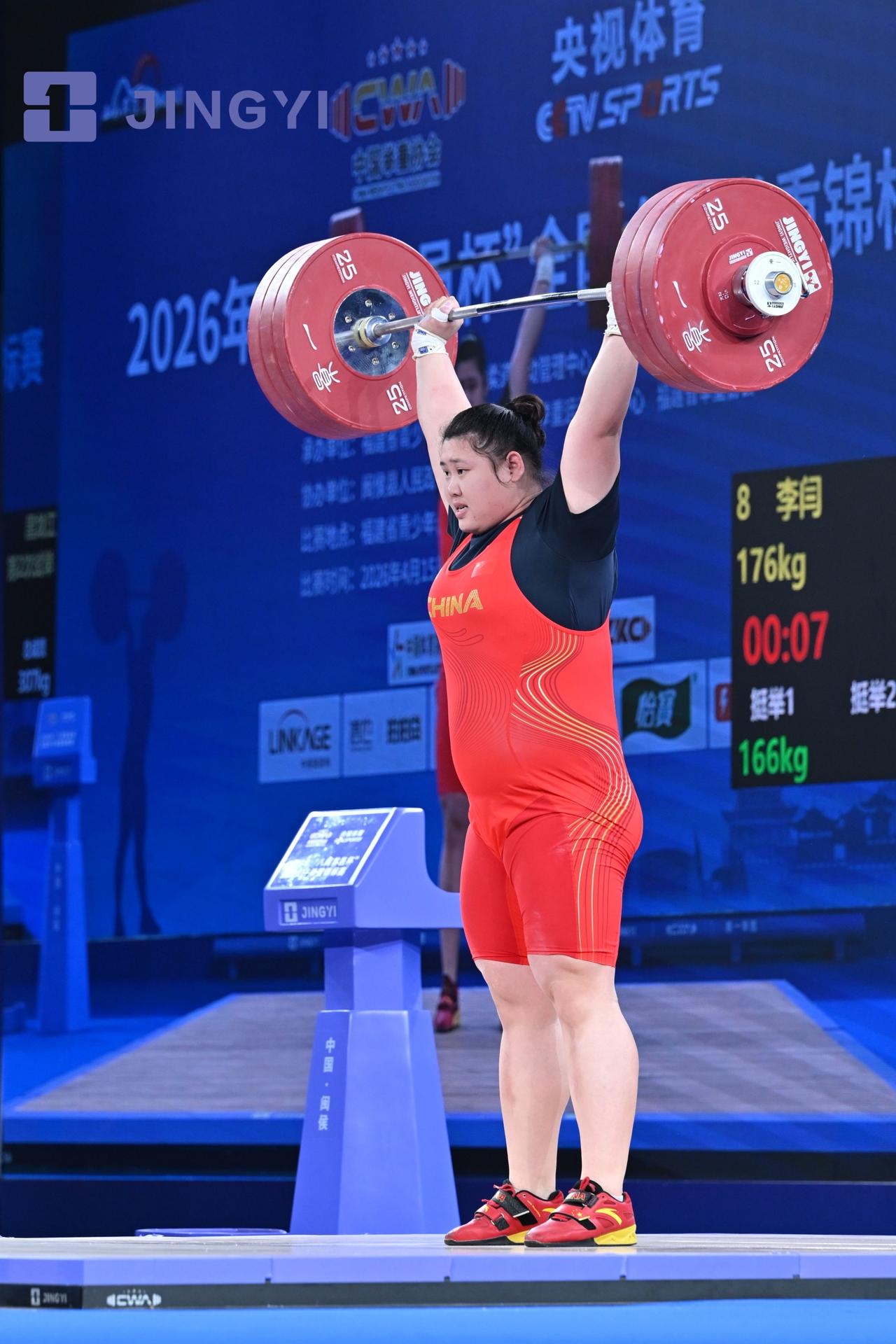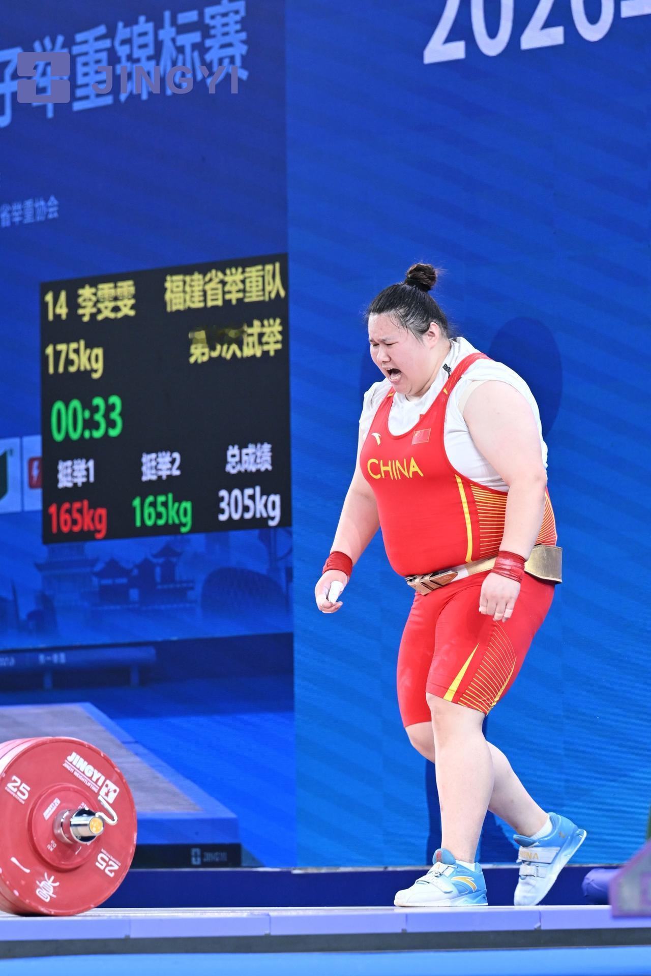 【2026年全国举重锦标赛 李闫包揽三金】4月18日晚,在2026年全国女子举重锦标赛女子+86公斤级A组比赛中,黑龙江选手李闫以抓举141公斤、挺举176公斤、总成绩317公斤包揽抓挺总三枚金牌! 福建选手李雯雯以抓举140公斤、挺举175公斤、总成绩315公斤收获抓挺总三枚银牌。陕西选手张宇馨以抓举125公斤、挺举163公斤、总成绩288公斤摘得挺举和总成绩两枚金牌。朝阳市体校孙永杰凭借126公斤获得抓举铜牌。
