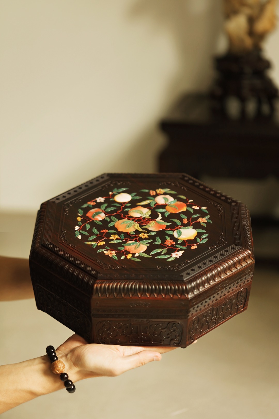 直径32cm 高11cm 重3045g 酸枝| 福寿·百宝果盒