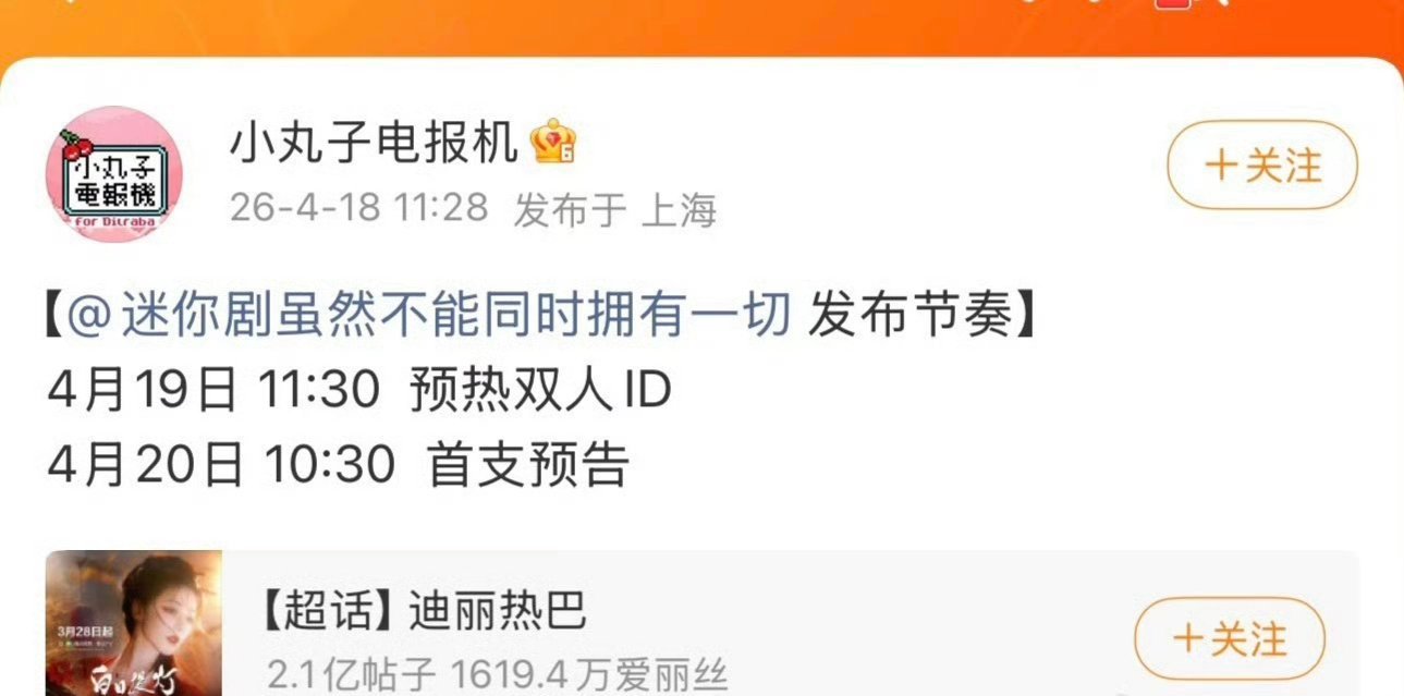 迪丽热巴新剧《虽然不能同时拥有一切》预告物料,这剧快播了