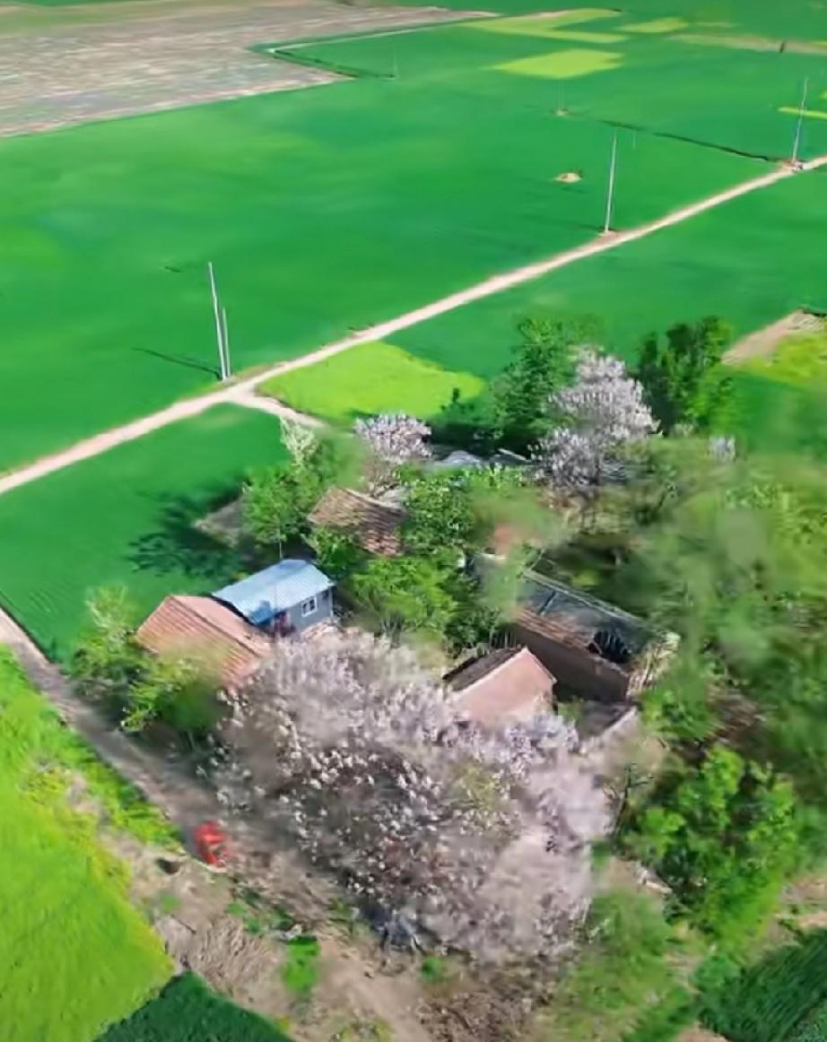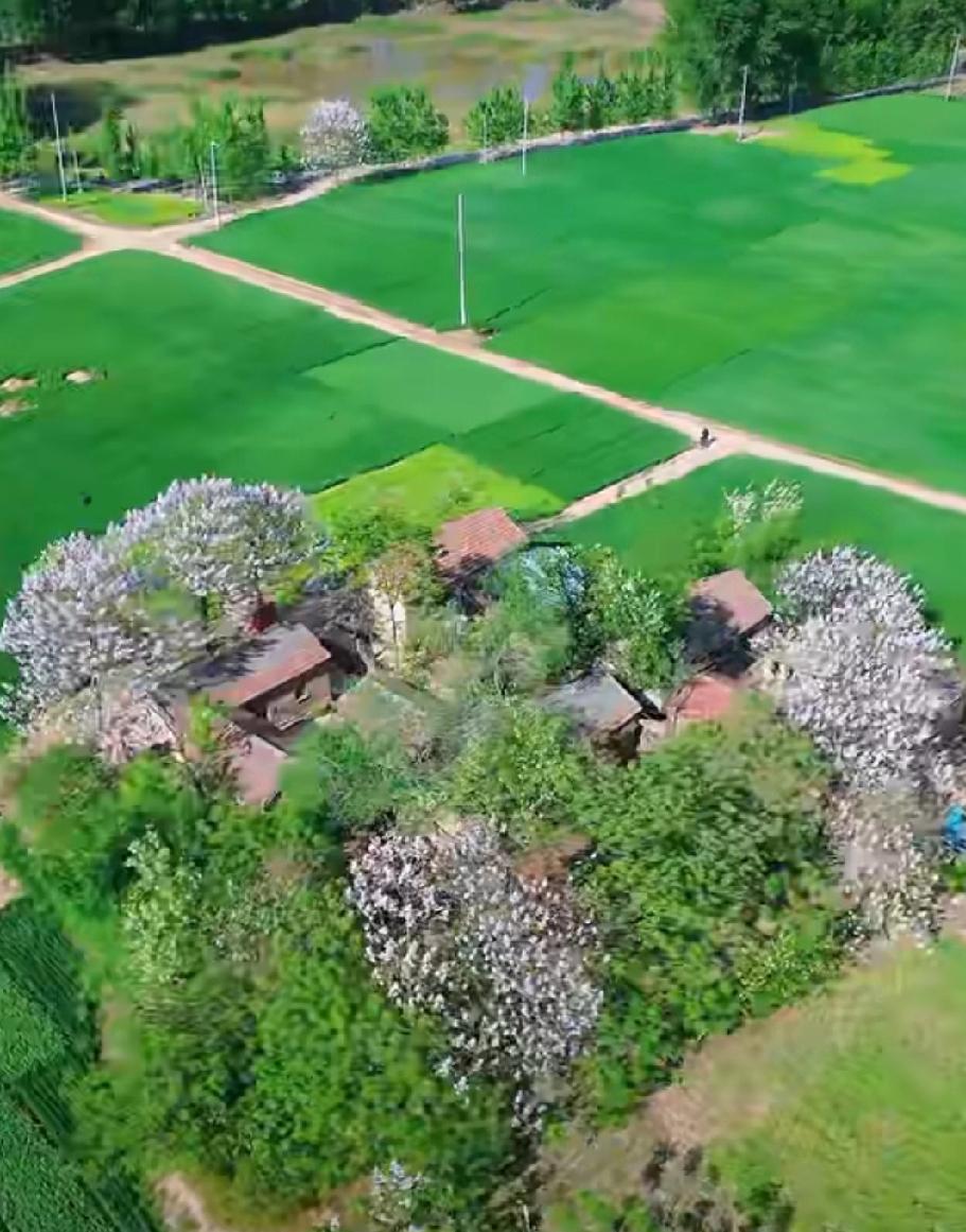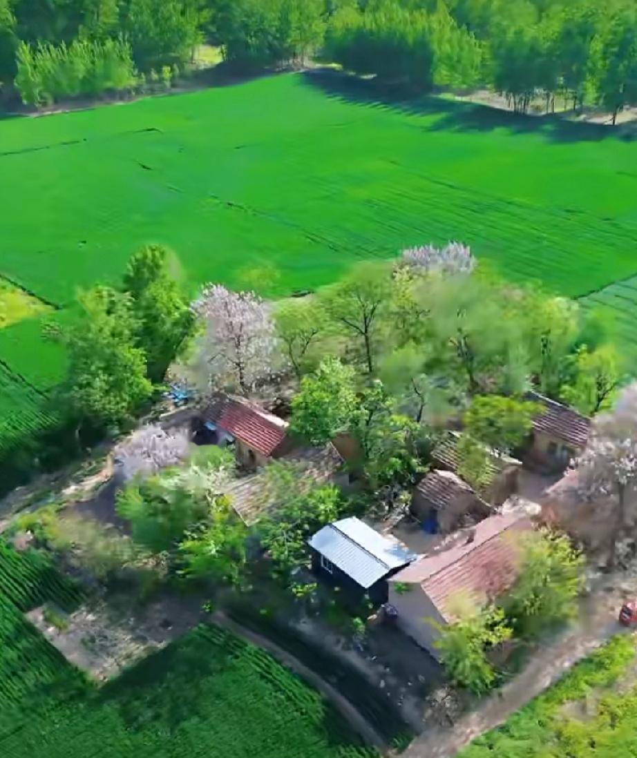 鄄城县董口镇鱼骨村 滩涂生小村,烟火三两户。 春风一到,泡桐花满径,麦浪围村。