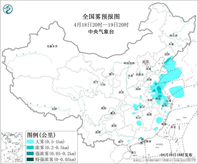 【大雾】中央气象台4月18日18时继续发布大雾黄色预警:预计,18日夜间至19日白天,黄海大部海域、东海西北部海域、辽东半岛东部沿岸海域、成山头附近海域、山东半岛南部沿岸海域、江苏北部沿岸海域、大连港、青岛港将有能见度不足1公里的大雾。