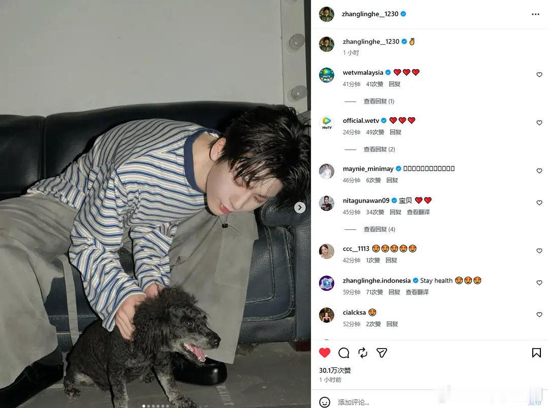 张凌赫ins1h破30万 2h破50万 3h破60万赞,这是真全球大爆生!!!