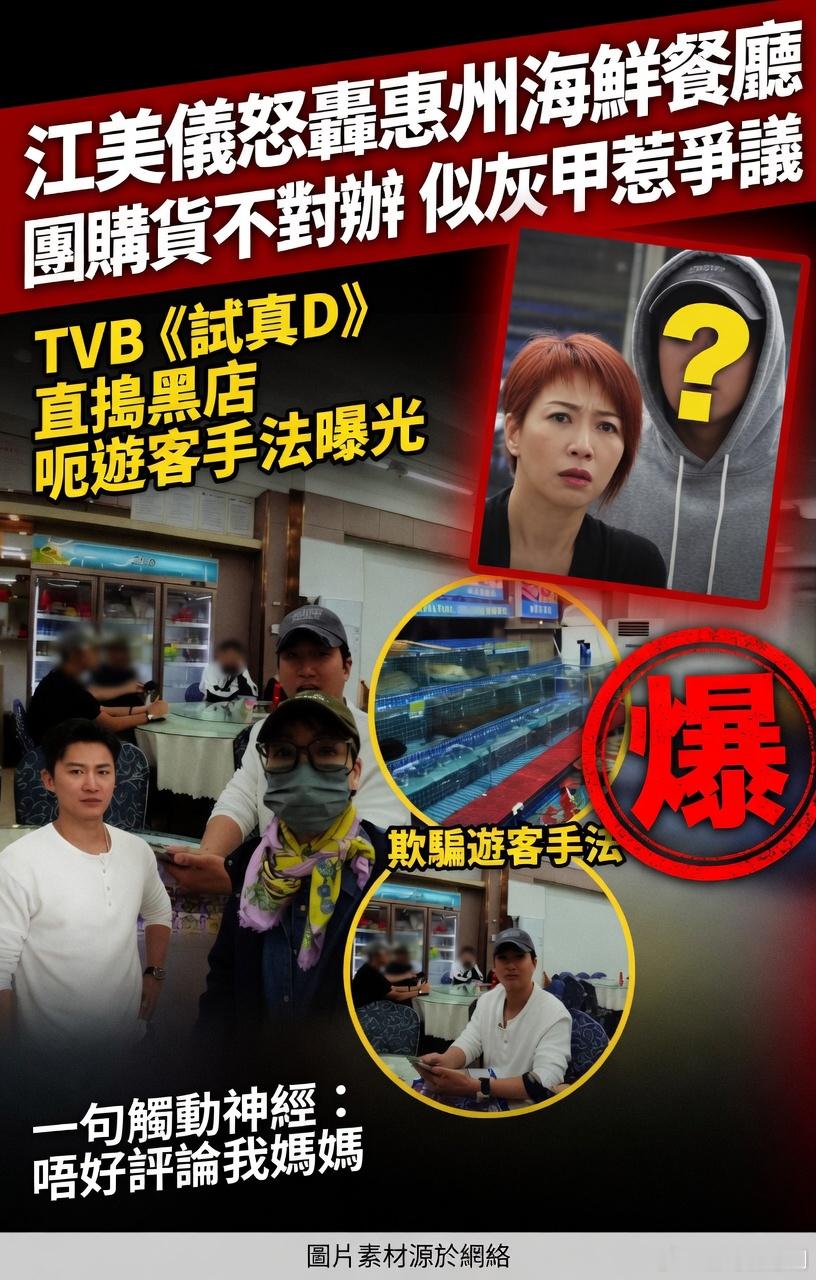 試真D丨江美儀批海鮮似灰甲惹爭議 一句觸動神經:唔好評論我媽媽.無綫綜藝節目《試真D》由江美儀帶住一班小鮮肉周圍試伏,話題十足。日前(16日)嗰集,江美儀、周嘉洛同曾展望(GM)去到惠州雙月灣實測一個叫價只係118元人民幣嘅海鮮團購餐。江美儀因為狠批海鮮質素差,爆出「灰甲」論,引嚟網民熱議。有網民仲喺Threads發文對佢人身攻擊,搞到江美儀罕有現身反擊。