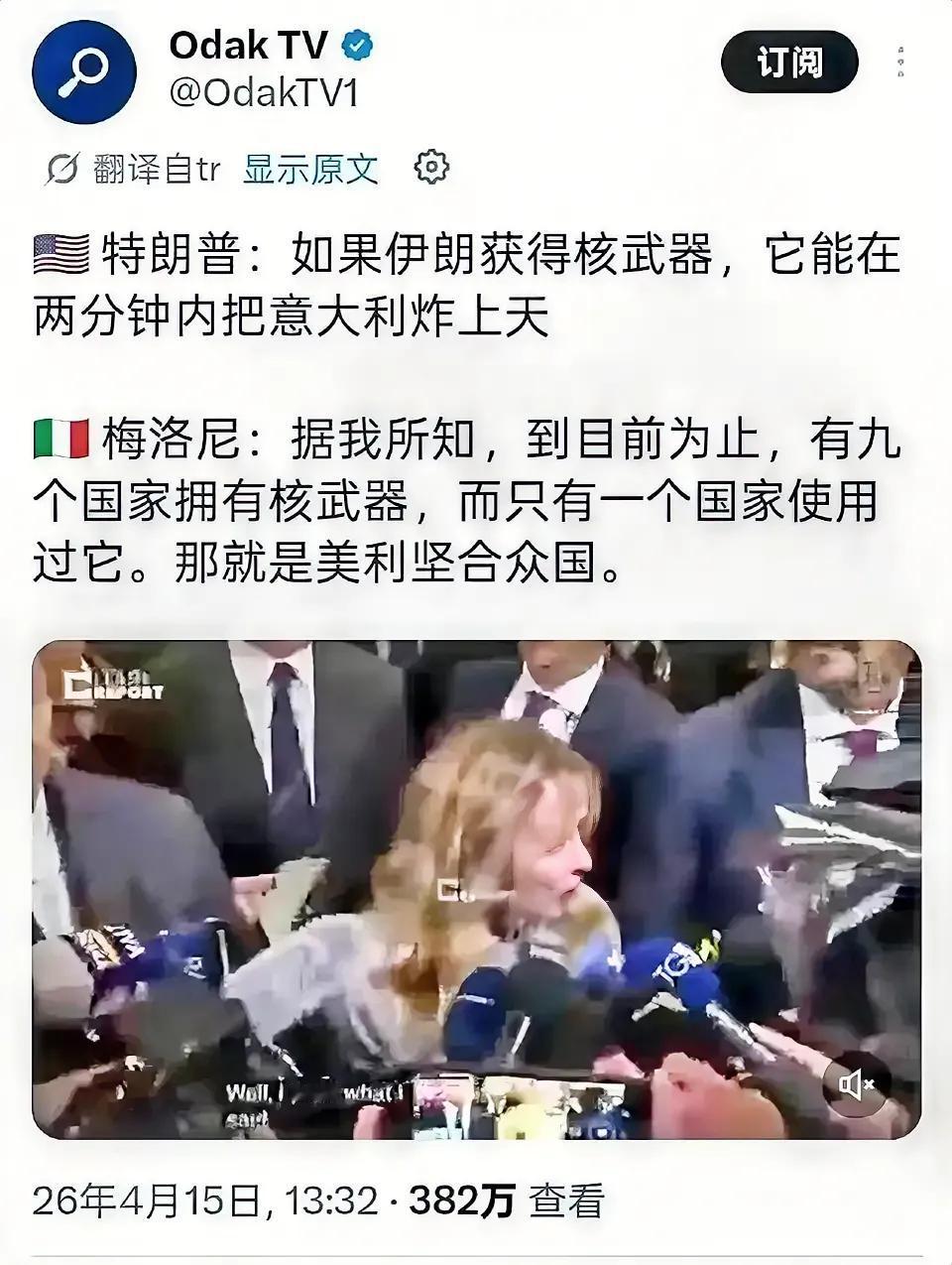 伊朗拥核与以色列相比,这两个国家谁更危险?以下是特朗普与意大利总理梅洛尼的各自观点,特朗普表示:如果伊朗获得核武器,他在两分钟内能把意大利炸上天。 对于特朗普的观点,意大利总理梅洛尼反驳道:据我所知,到目前为止,有九个国家拥有核武器,而只有一个国家使用过它,那就是美利坚合众国。这短短的几句话,可以看出梅洛尼绝非善茬,这话说的不拖泥带水。 其实伊朗也好,以色列也罢,一旦这两个国家都拥有核武器,很难说哪个国家哪个更危险,但是有一点可以肯定,如果伊朗真正拥核,美以两国决不敢这么大胆对伊朗出手,对于特朗普和梅洛尼的上述观点,您的看法如何。