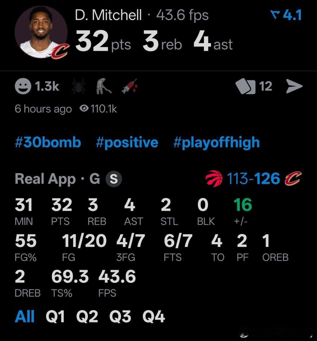 这是季后赛揭幕战!骑士126:113击败猛龙,拿下首战,系列赛大比分1-0领先。