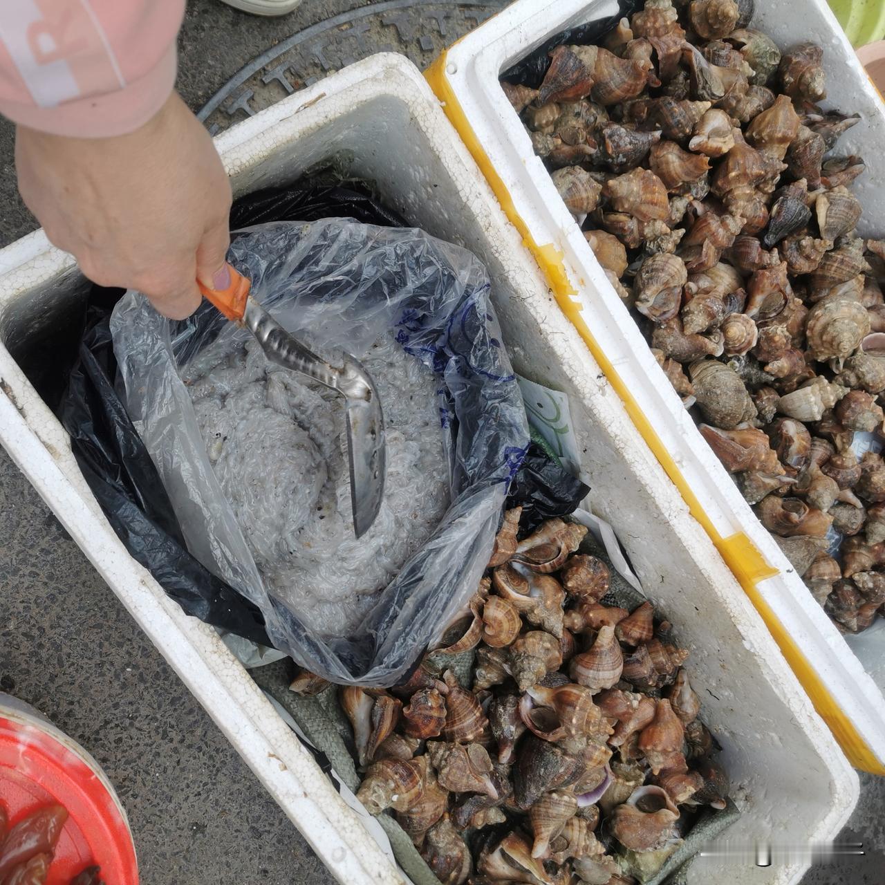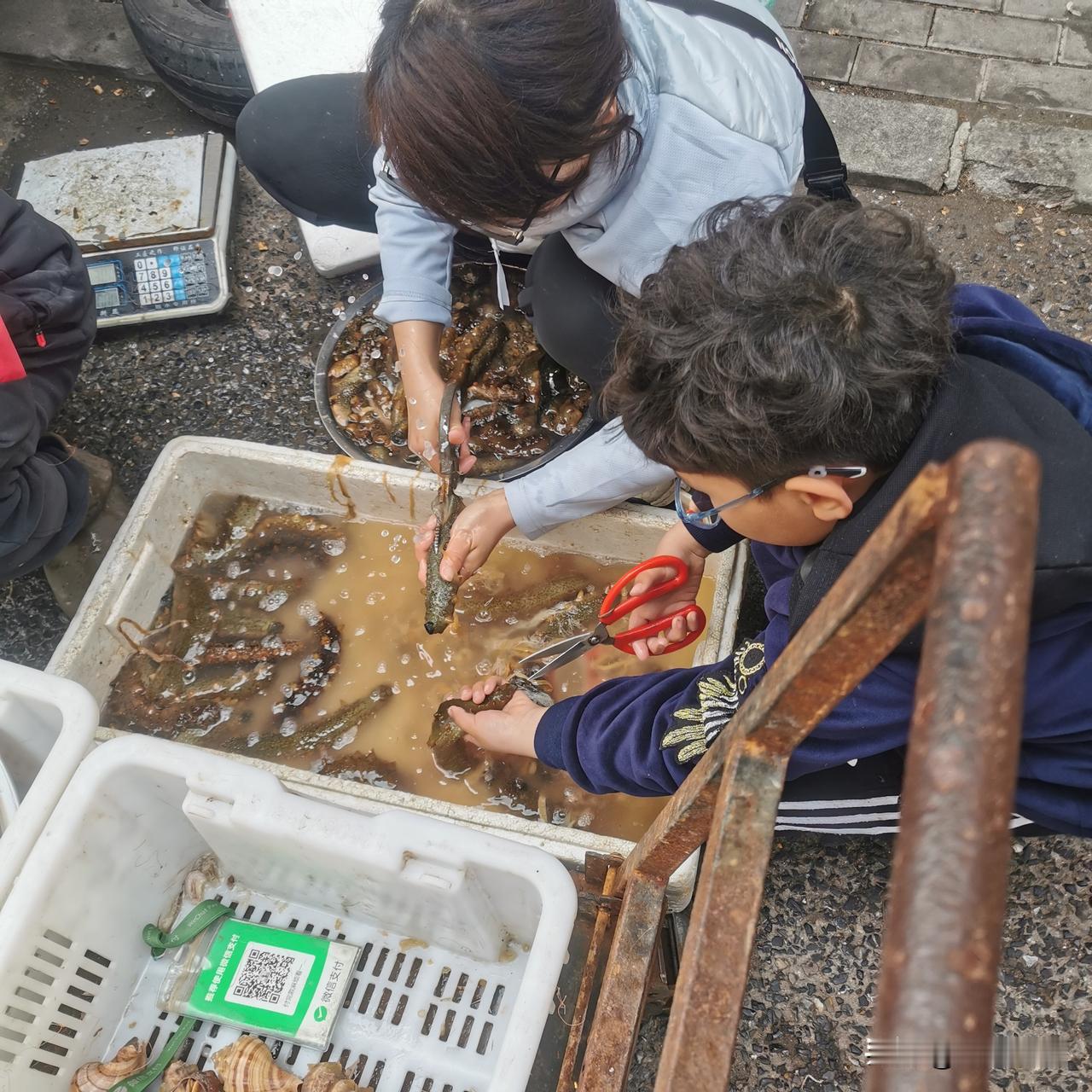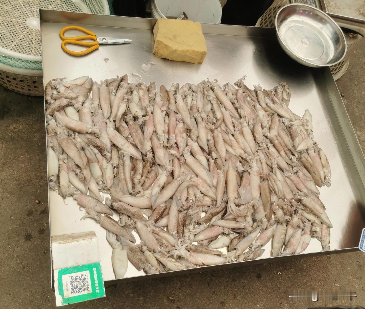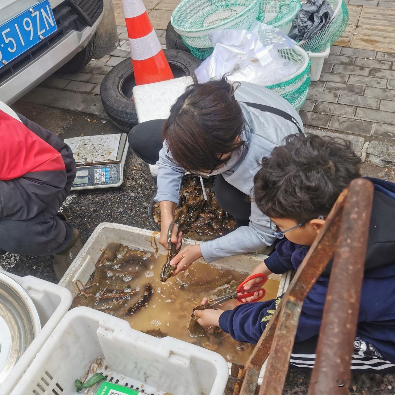 二七广场春海市场的海鲜好便宜! 面条鱼10元钱一斤。 红灯笼虾15元钱一斤,我在这个市场里走一圈,有10多处卖这种虾的,大部分商户的这种虾都是这个价格。 鸦片鱼20~15块钱一斤,新鲜度老好了。 商户一早上都卖百十斤,剩下的这几条叫我买了,给我打折,12块钱一斤(图三)。 笔管鱼的新鲜度非常好,个头大小整齐,20元一斤。 比巴掌还大的鲜海参,45块钱一斤,现买现扩,商家都给处理的妥妥的。 在这个摊位旁,看见一个八九岁的小男孩子,帮他妈扩海参像模像样,我问他妈妈,孩子在家也帮您干活吗?小朋友点点头,小孩子超可爱,知道心疼父母的不易。 不过最好戴上一副手套,看小孩那双嫩稚的小手被盐卤,也是心里不是滋味儿,别把孩子的手搞坏了! 大家抓紧时间吃海鲜吧,还有10天左右的时间,大连就要封海了!该囤囤,该买买,该吃的吃! 晒出你的本地生活