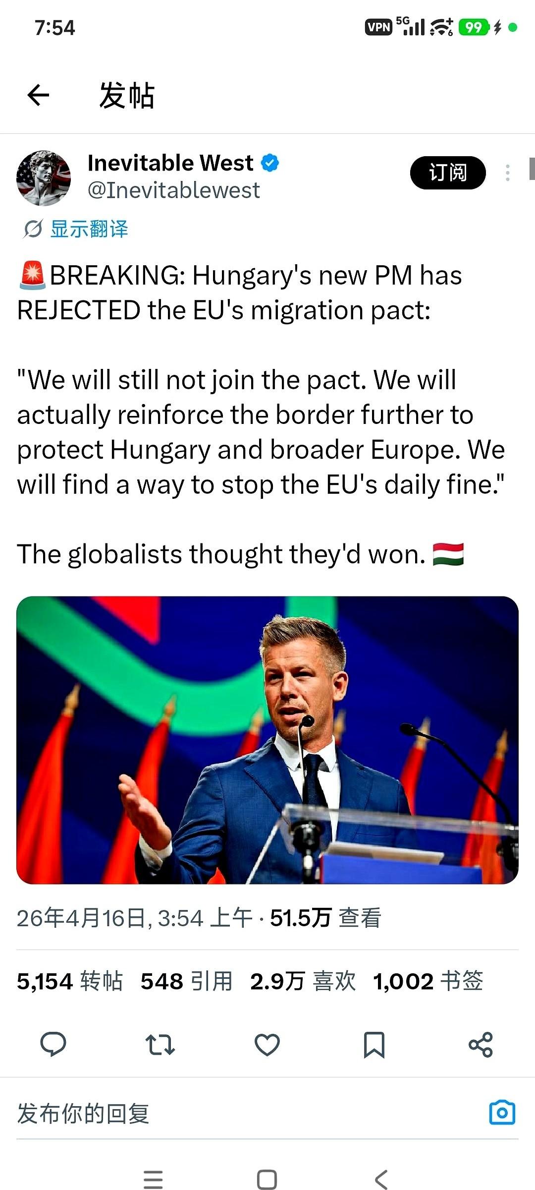 冯德莱恩这次的算盘,可能真的拨错了。 她原本以为送走了那个难缠的欧尔班,匈牙利这块硬骨头总该能啃得动了。结果新上任的那位一露面,直接把谈判桌给撤了。 面对欧盟那份催了又催的移民协议,对方连客气话都没留,声音响亮:这协议,我们不签。 这还没完,这位新面孔直接把防线又往外推了一步。他不但没打算松口,反而下令调集更多人马,要把边境守得比以前更死。 最让欧盟头疼的是那笔账单。本来想靠每天开出巨额罚单逼对方低头,结果人家反手就是一个动作:正带人研究怎么把这笔罚款挡回去,一分钱都不打算掏。 这就尴尬了。欧盟本想等来一个“听话的”,没想到撞上了一个“更硬核的”。 以前是欧尔班在前面顶着,现在这位,像是要把身后的门彻底焊死。哪怕欧盟的罚单像雪片一样飞过来,他手里的边境钥匙也捏得死死的。 这场“罚款与拒绝”的拉锯战,最后到底是欧盟的规矩大,还是匈牙利的脾气大? 有人觉得这是在自讨苦吃,也有人觉得这才是真硬气。 要是换了你,你会选择交钱进门,还是哪怕被罚款也要把大门锁死?